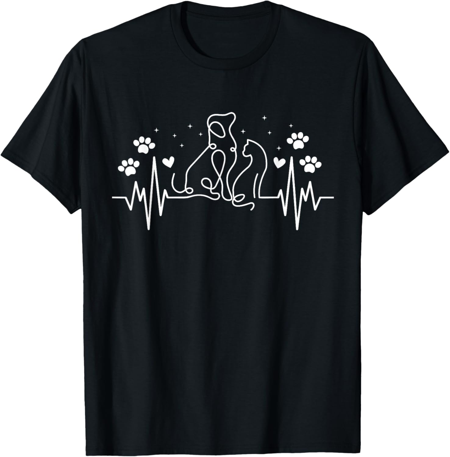 Line Art Veterinary Heartbeat Dog And Cat Lovers Vet Tech T-Shirt