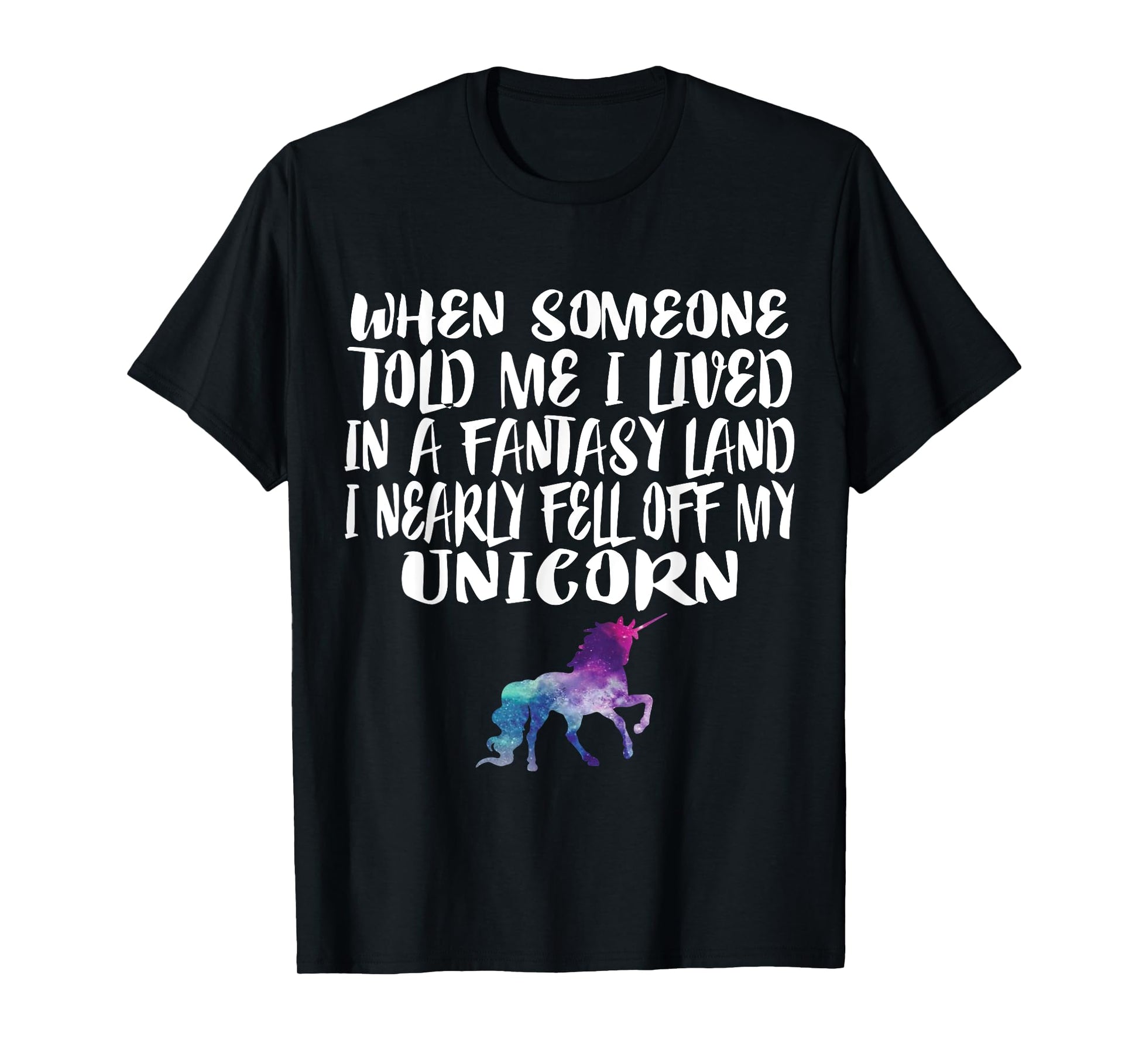 Lived In A Fantasy Land Fell off my Unicorn Funny Quote Tee T-Shirt