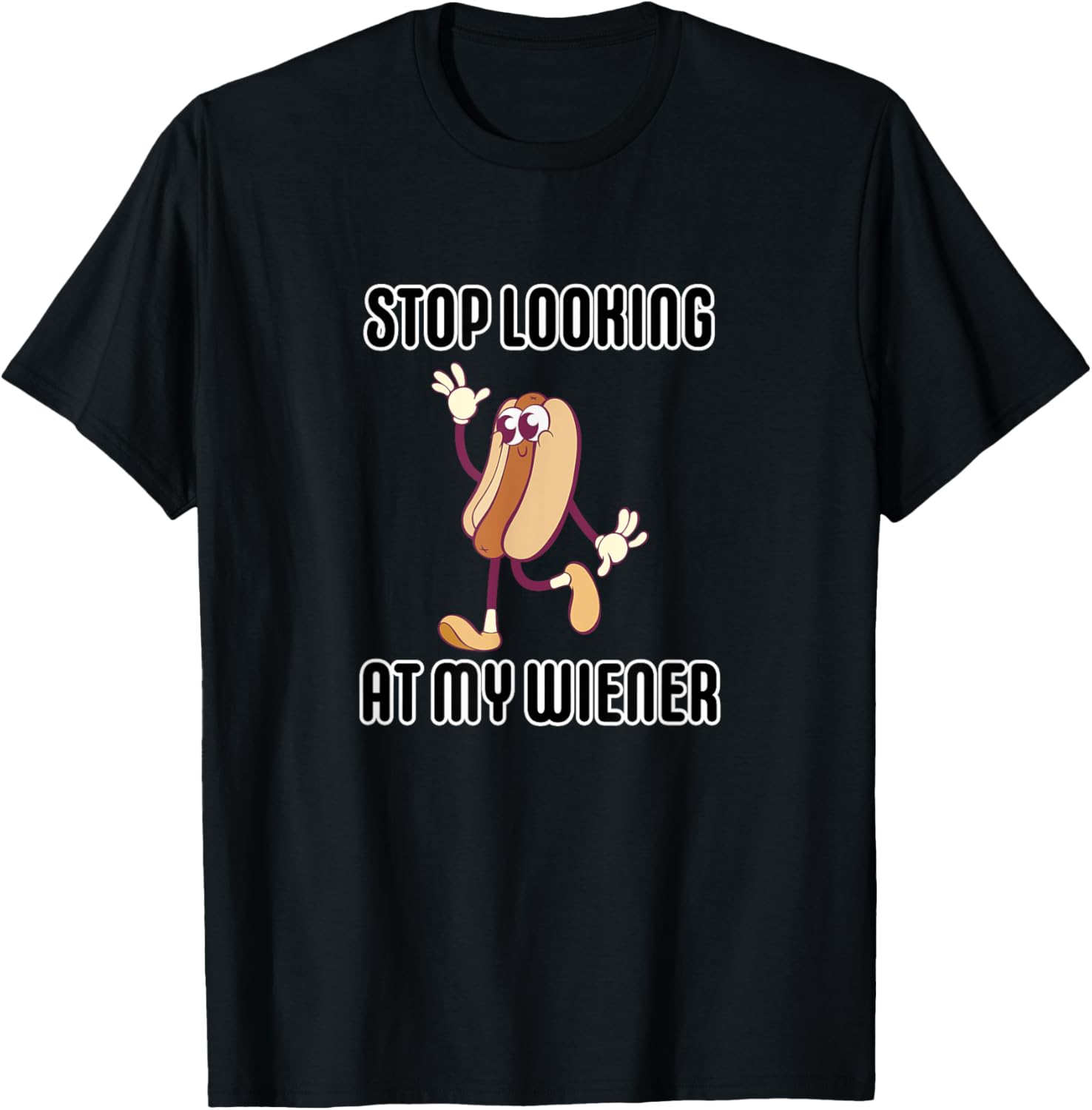 Stop Looking At My Wiener Funny Hot Dog Cartoon Retro Humor T-Shirt