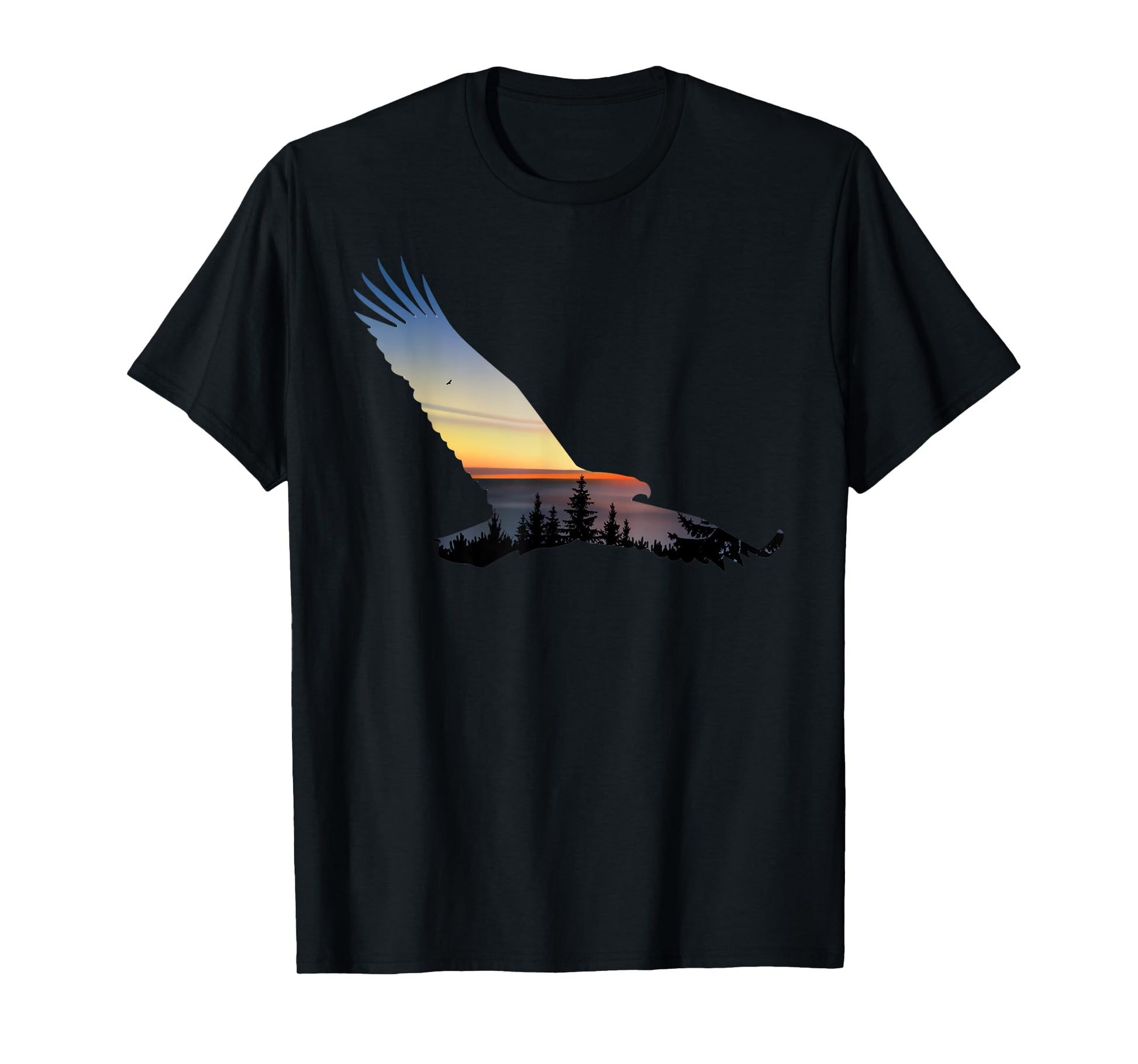 Lovely Flying Eagle Trippy Forest Sky Silhouette T-Shirt
