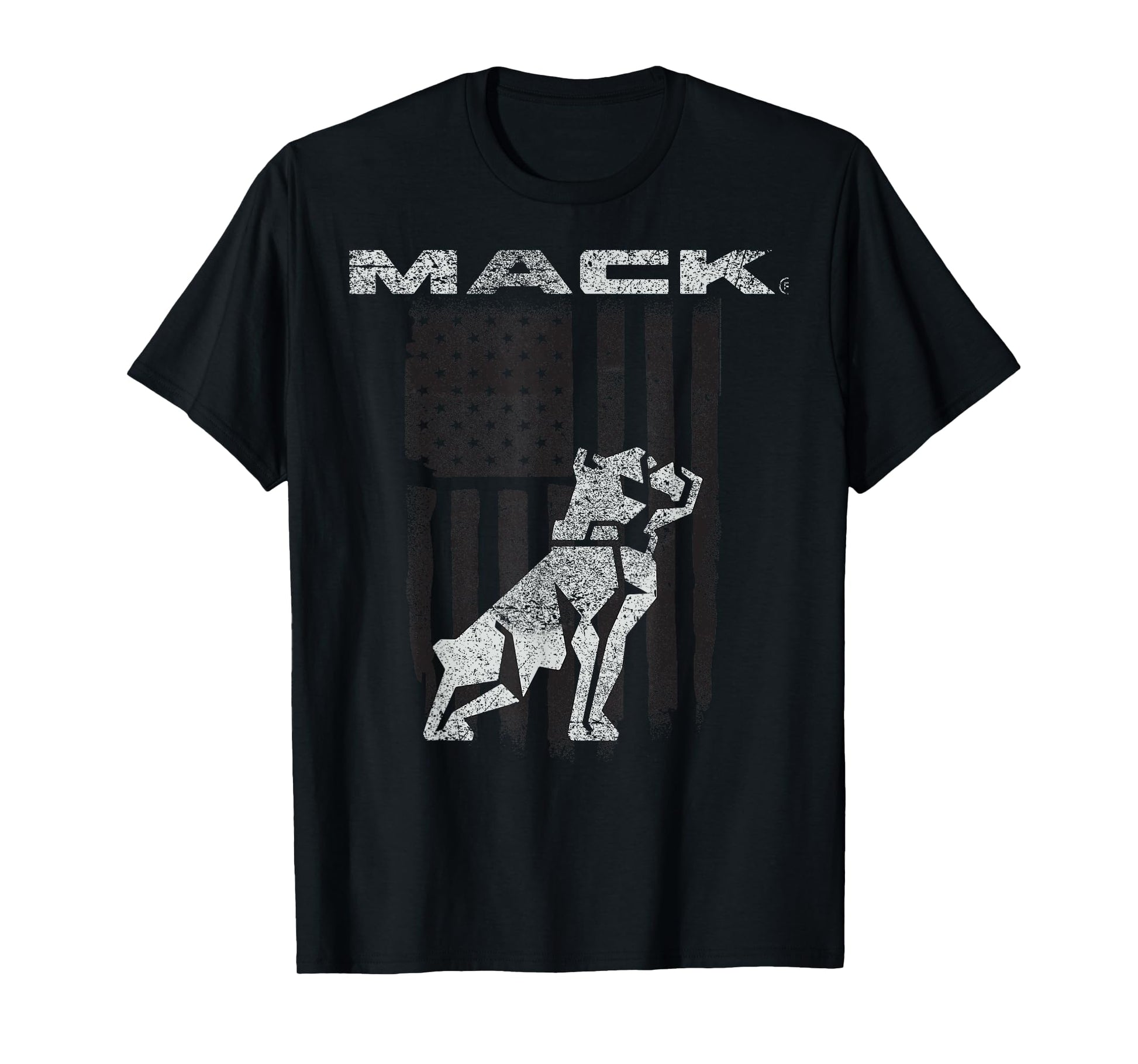 Mack Trucks Mack The Bulldog Logo with American Flag Trucker T-Shirt