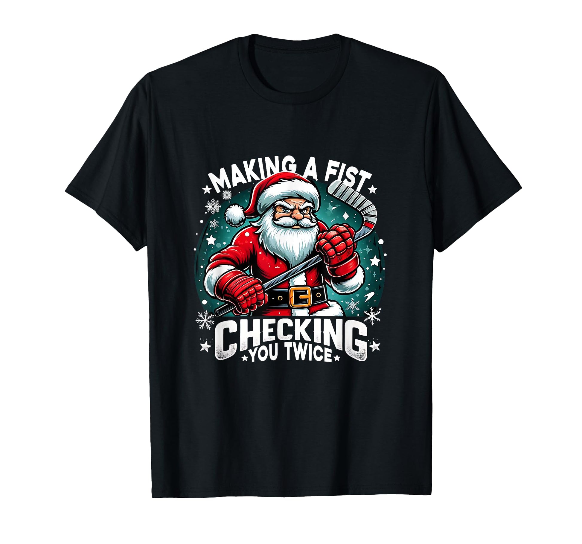 Making A Fist Checking Your Twice Santa Xmas Hockey Players T-Shirt