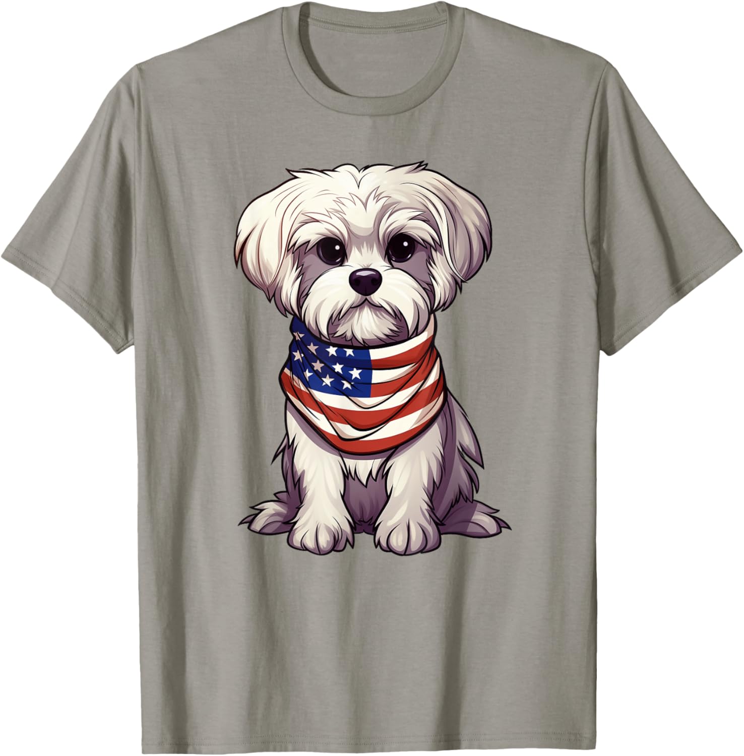 Maltese American Flag Maltese Dog Owner Mom Dad Men Women T-Shirt