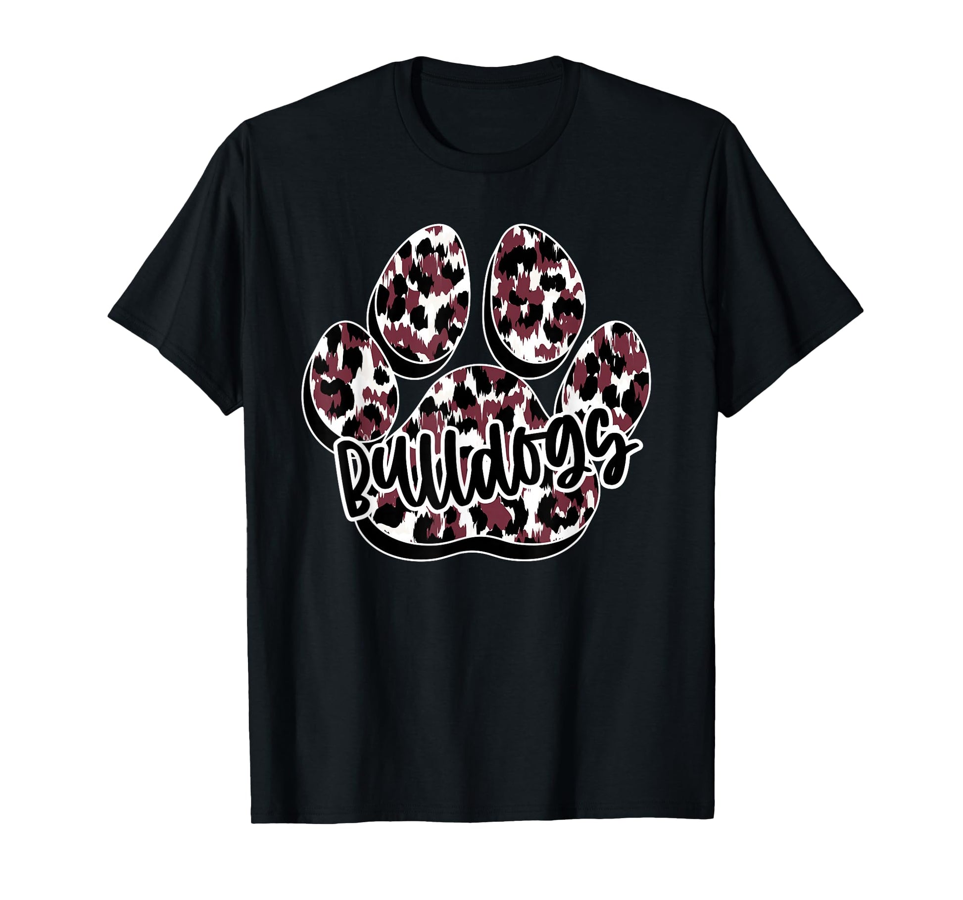 Maroon Bulldogs Leopard Paw Print Leopard School Mascot T-Shirt