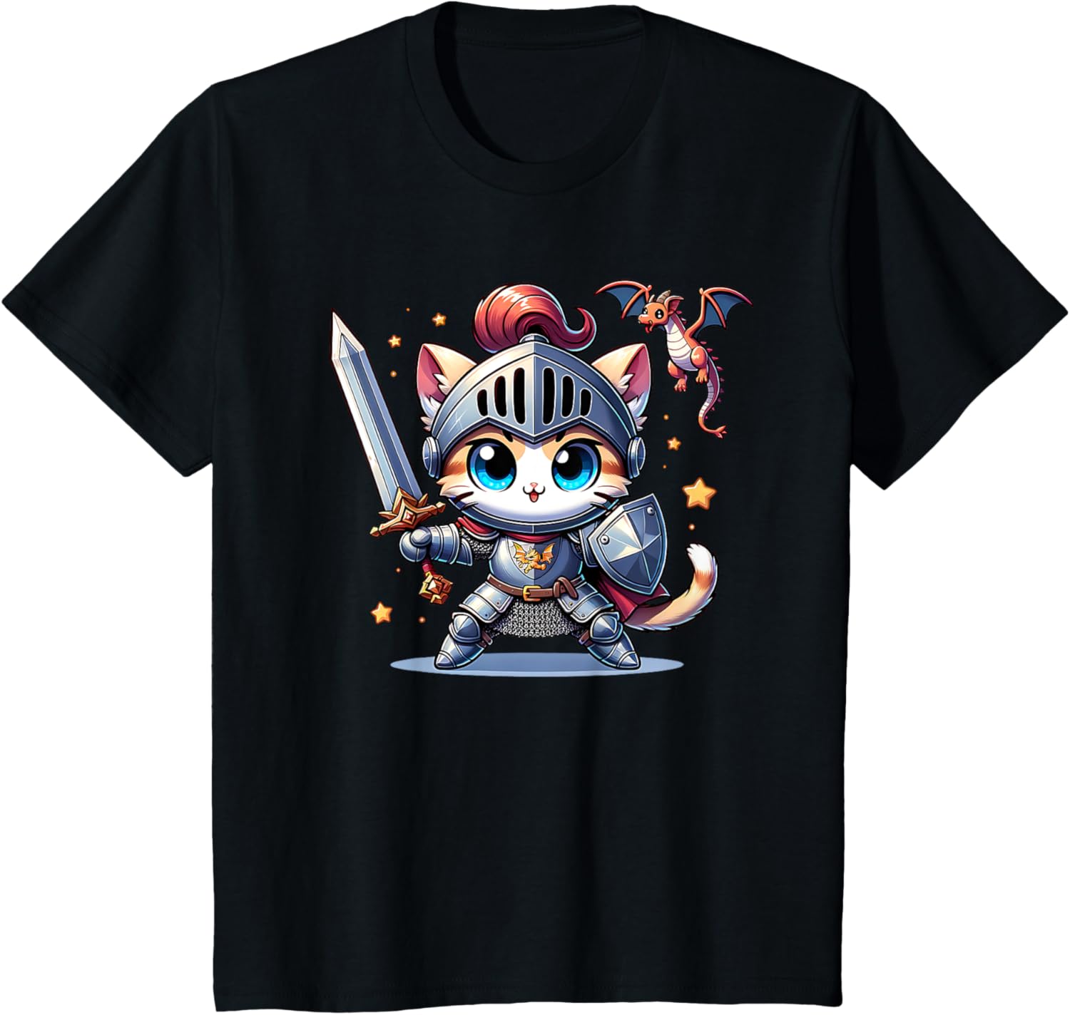 Kids Medieval Knight Cat Kitten Sword Dragon Ren Faire Graphic T-Shirt