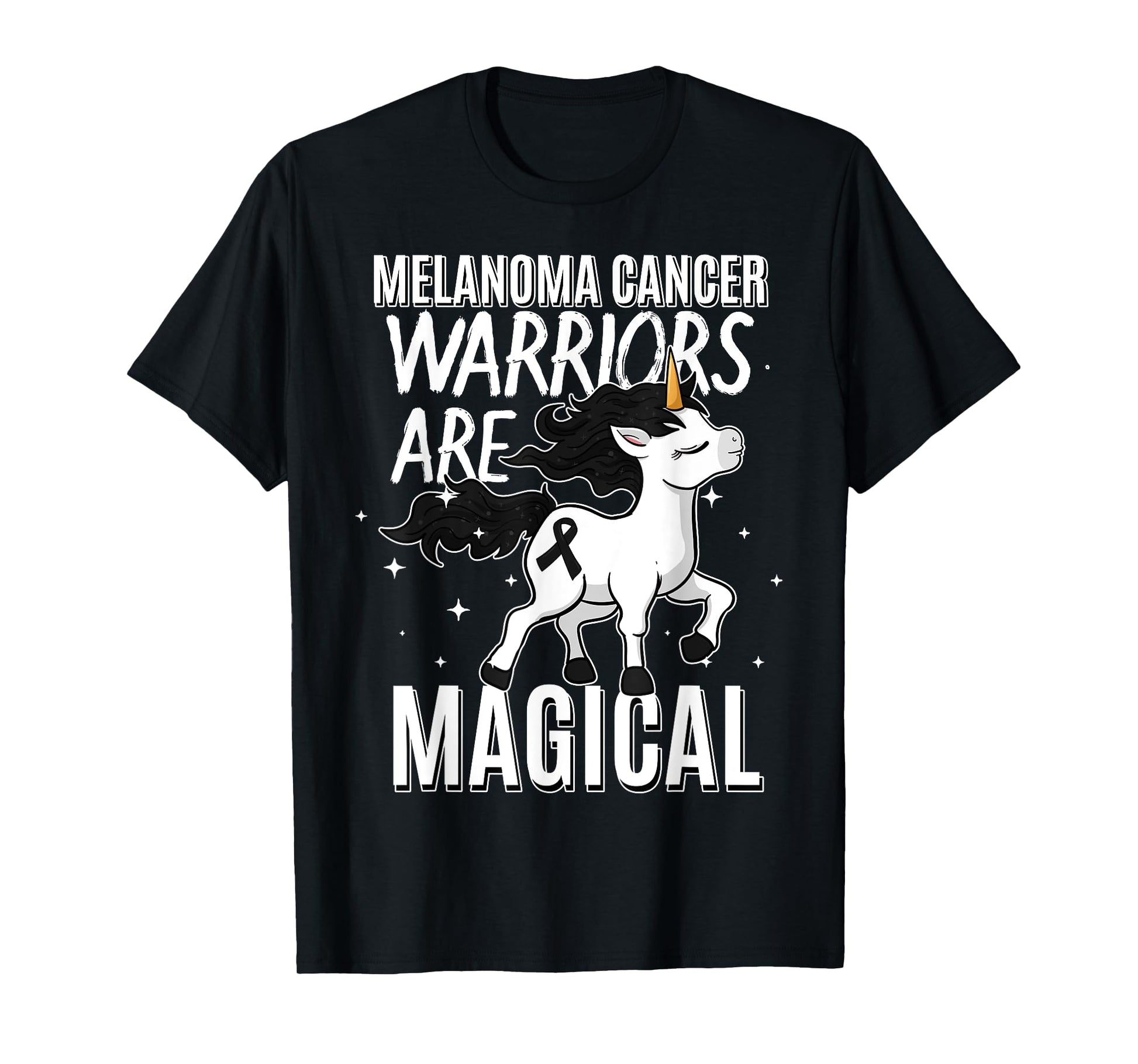 Melanoma Cancer Magical Unicorn Black Ribbon Dermatologist T-Shirt