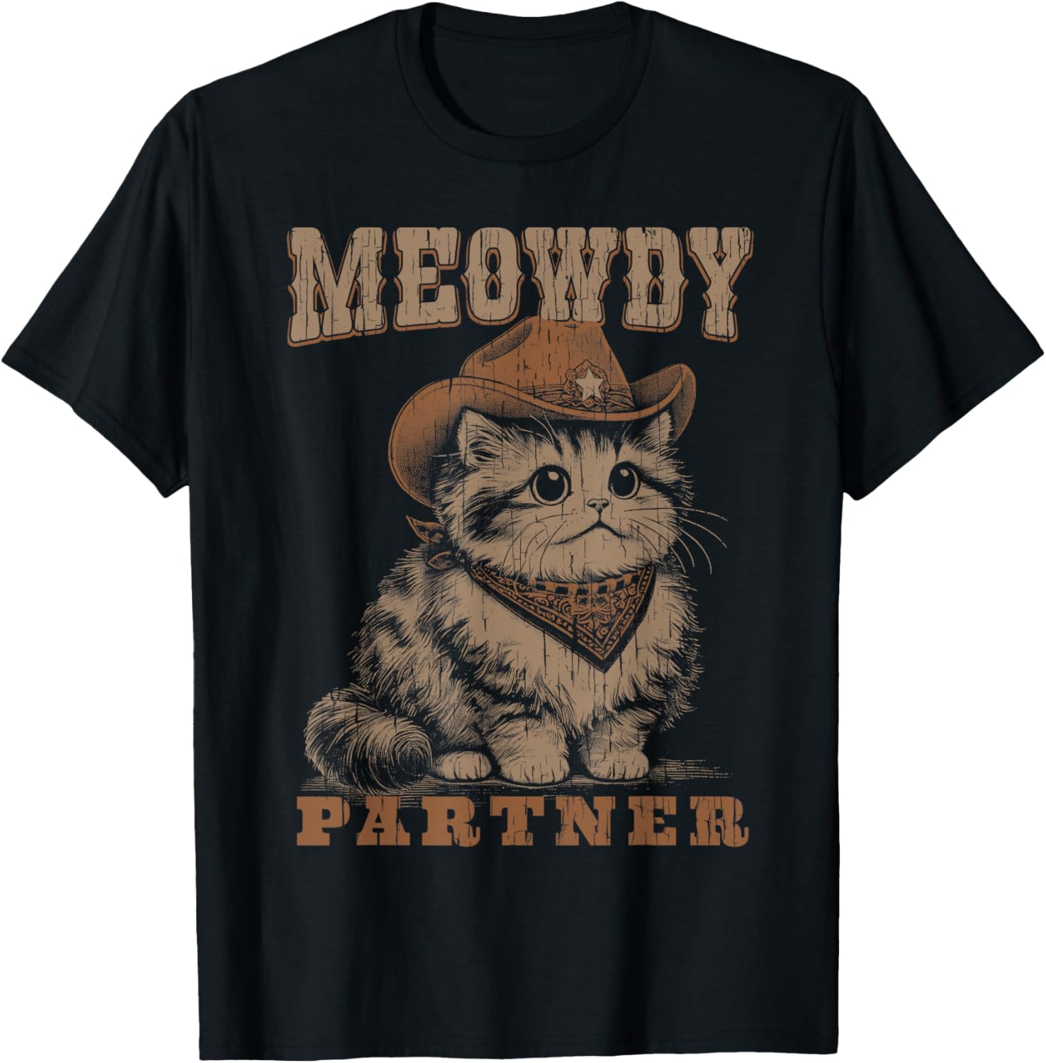Meowdy Partner Funny Cat Cowboy Vintage Graphic T-Shirt