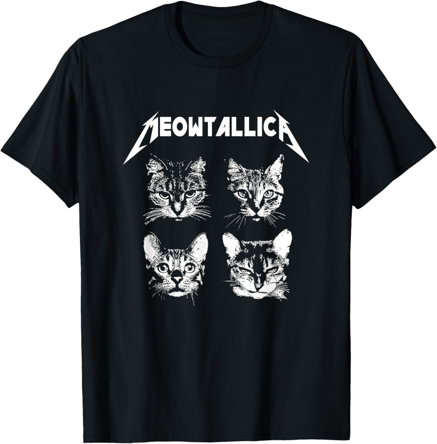 Meowtallica Black White Funny Parody Band Cat Kitten Lover T-Shirt