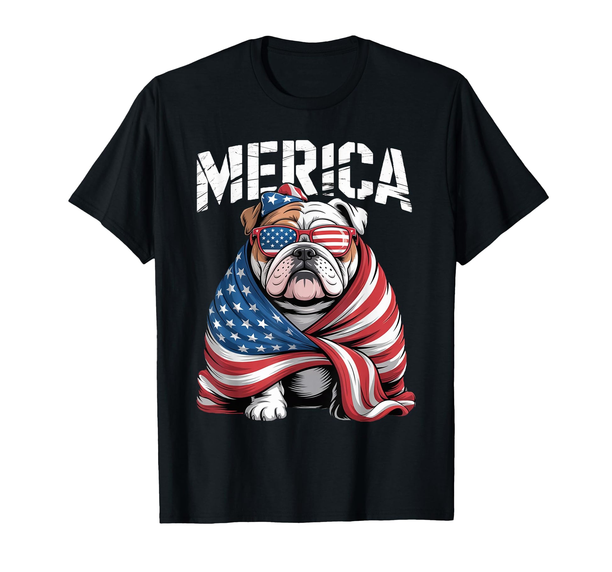 Merica English Bulldog Patriotic American Flag 4th Of July T-Shirt