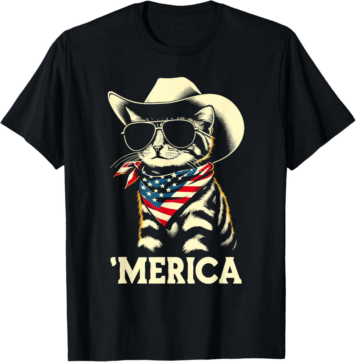 USA 'Merica Cat 4th of July Men Women Kids Funny Patriotic T-Shirt