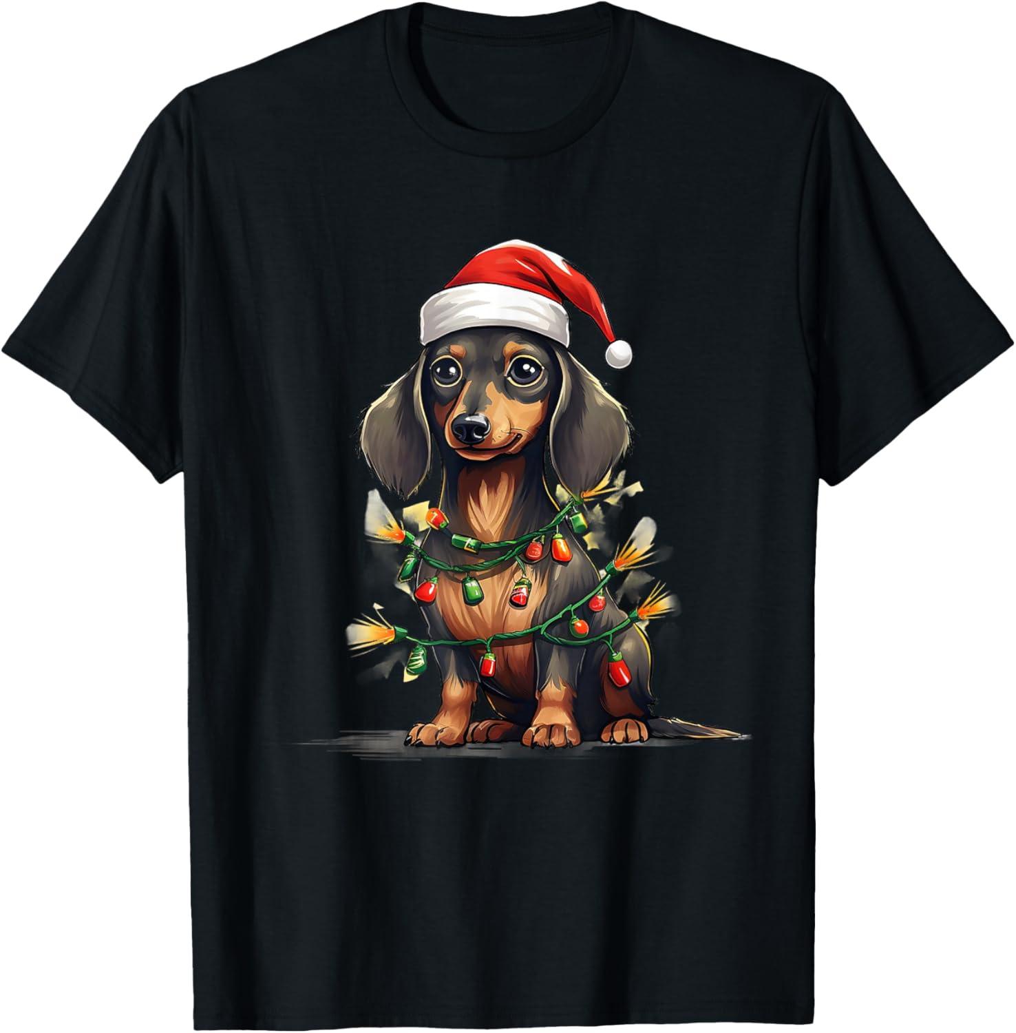 Merry Christmas Dachshund Santa Hat Lights Xmas Men Women T-Shirt