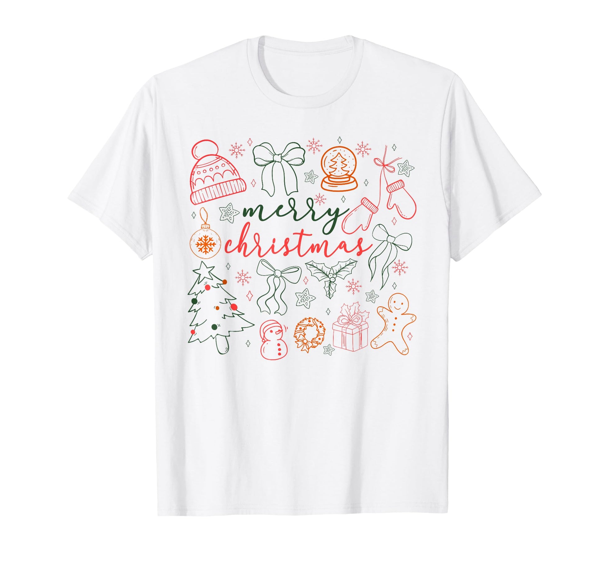 Merry Christmas Doodle Xmas Tree Gingerbread Men Women Kids T-Shirt
