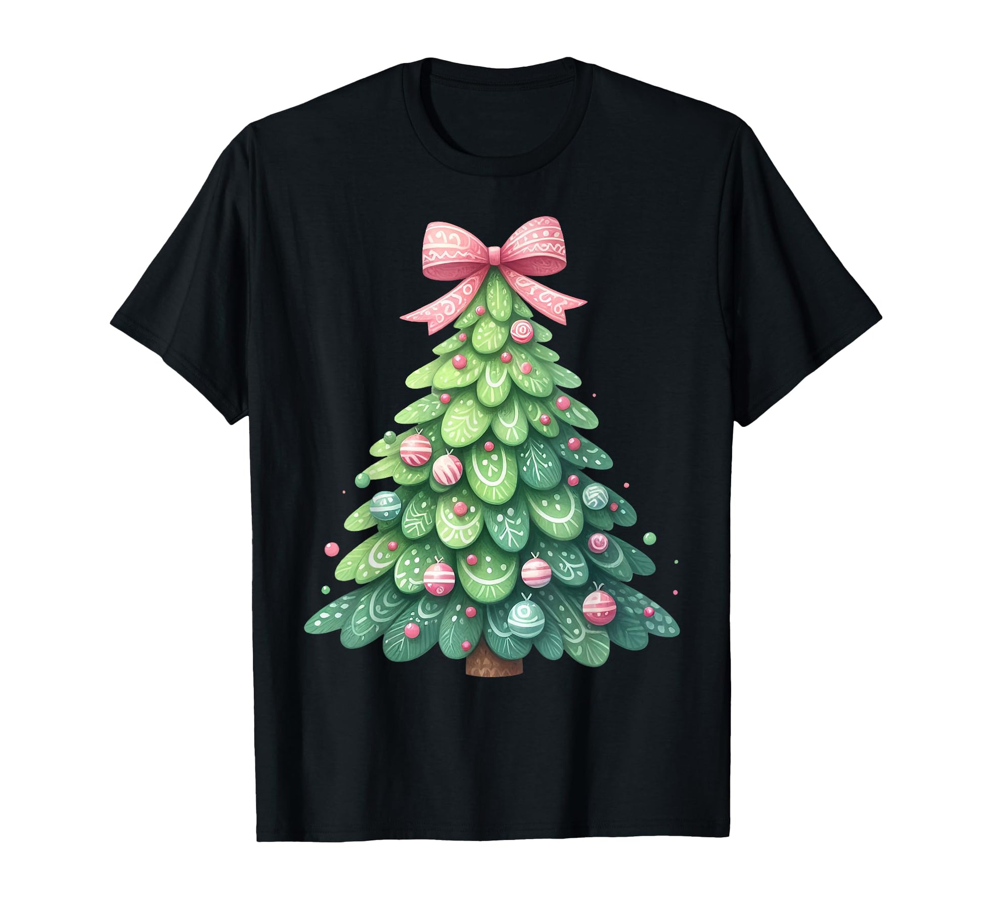Merry Christmas Tree with Coquette Bow Xmas Holiday Women T-Shirt