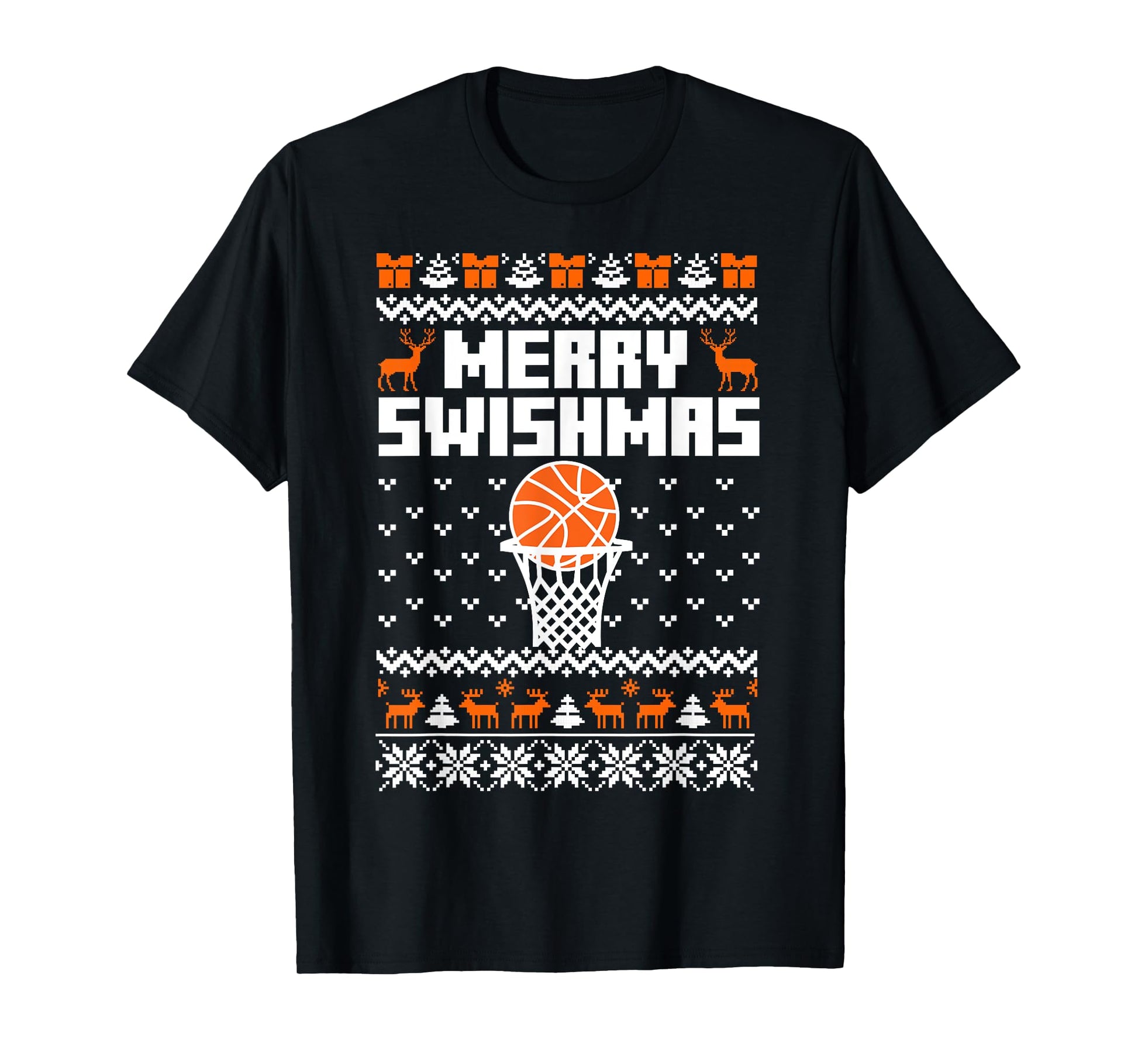 Merry Swishmas X-Mas Holiday Basketball Lover Ugly Christmas T-Shirt