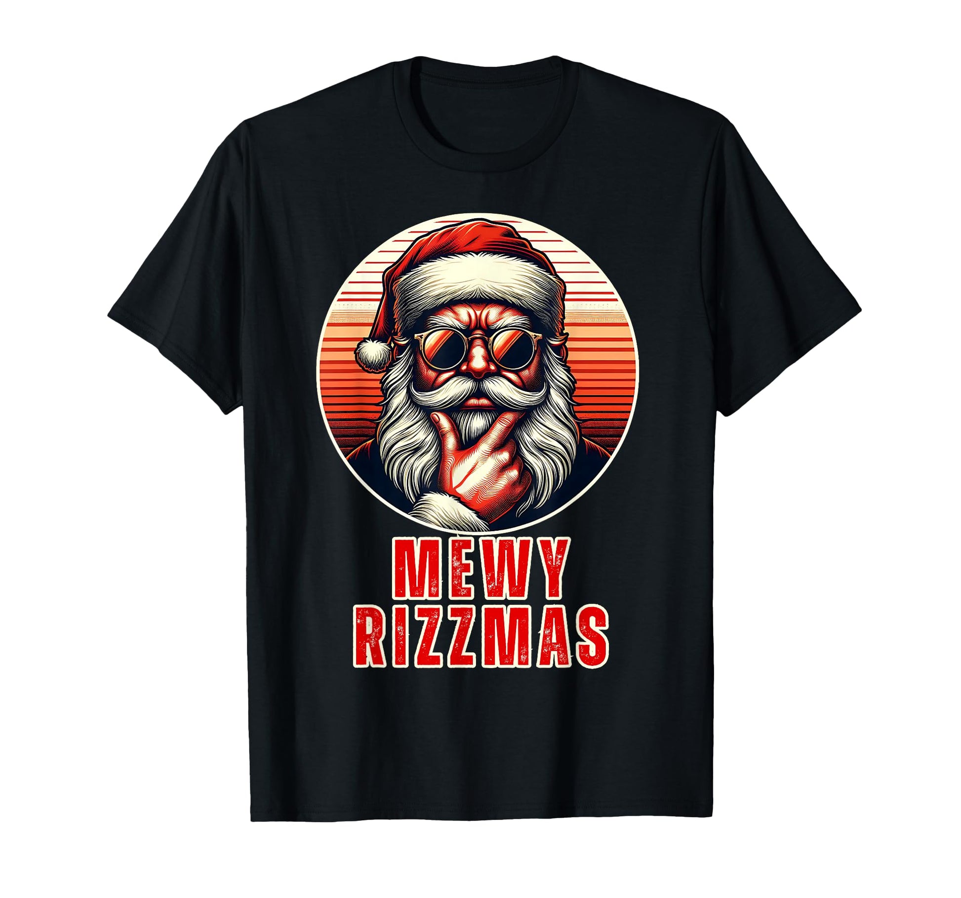 Mewy Rizzmas Funny Santa Mewing Joke Rizz Mens Christmas T-Shirt