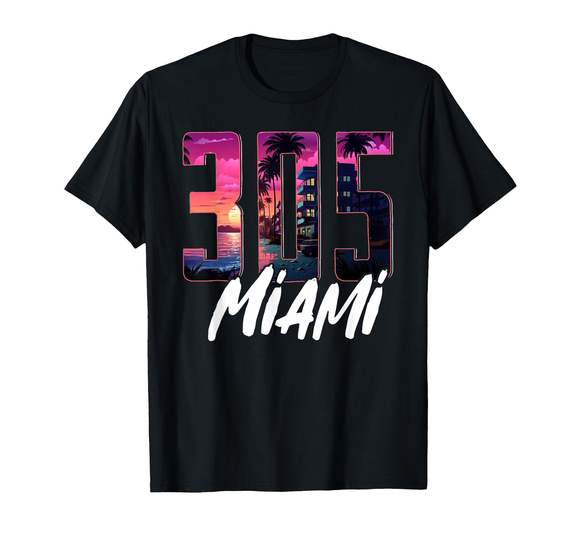 Miami 305 Area Code Vintage Florida Skyline 305 Retro Miami T-Shirt