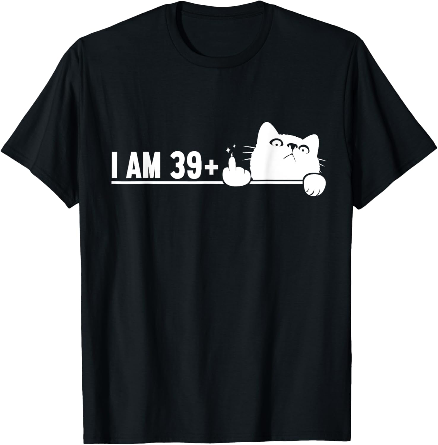 Funny, I Am 39 Plus, Cat Middle Finger 40th Birthday Cat T-Shirt