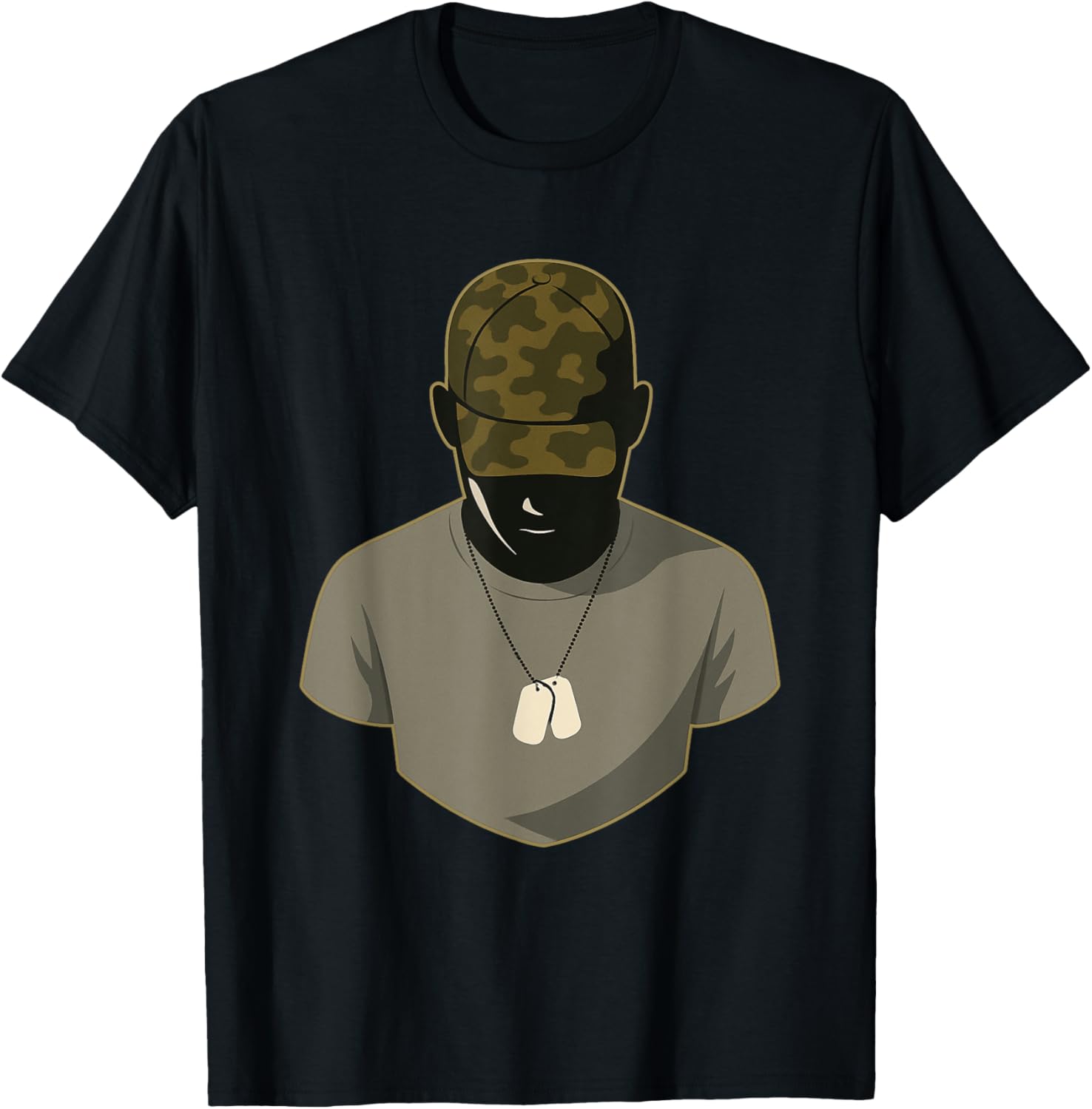 Military Man Camo Hat and Dog Tags Camouflage T-Shirt