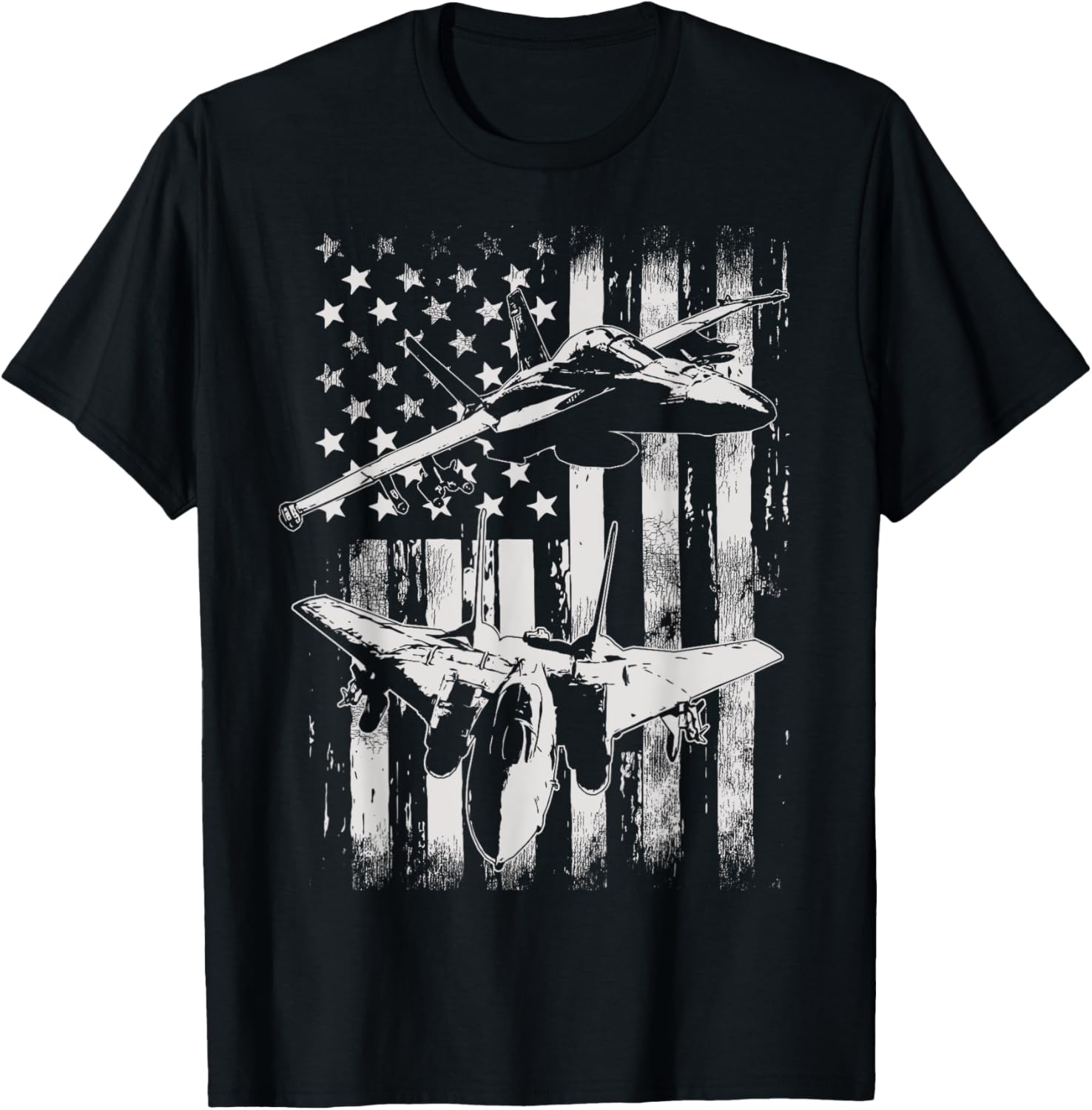F-14 Tomcat Military Fighter Airplane American Flag T-Shirt