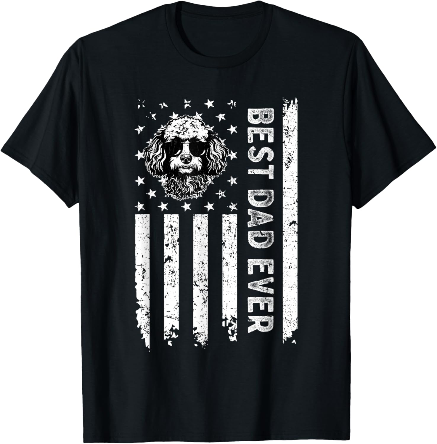 Best Miniature Poodle Dog Dad Ever Fathers Day USA Flag T-Shirt