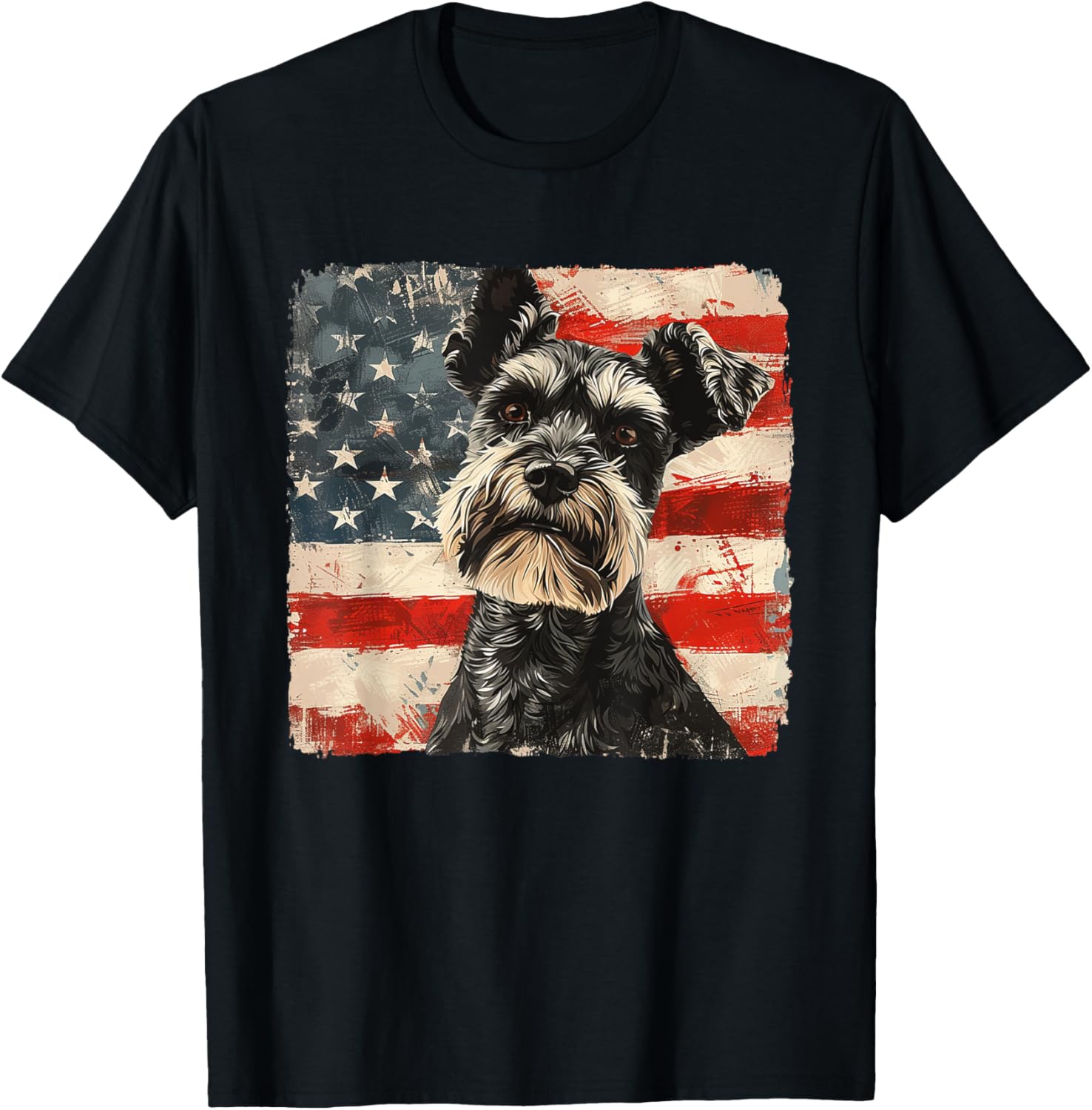 Miniature Schnauzer Dog Art Usa Patriot Independence Day T-shirt for Men Women Girls Kids