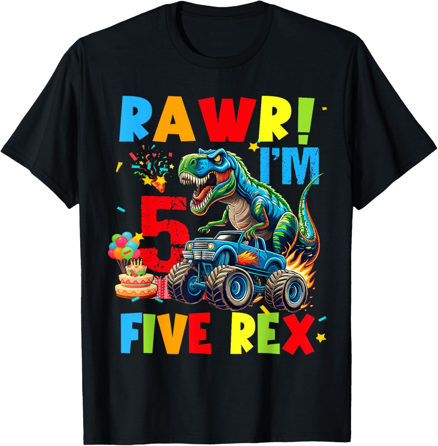Monster Truck Boy Dinosaur 5th Birthday Party Monster Truck T-Shirt