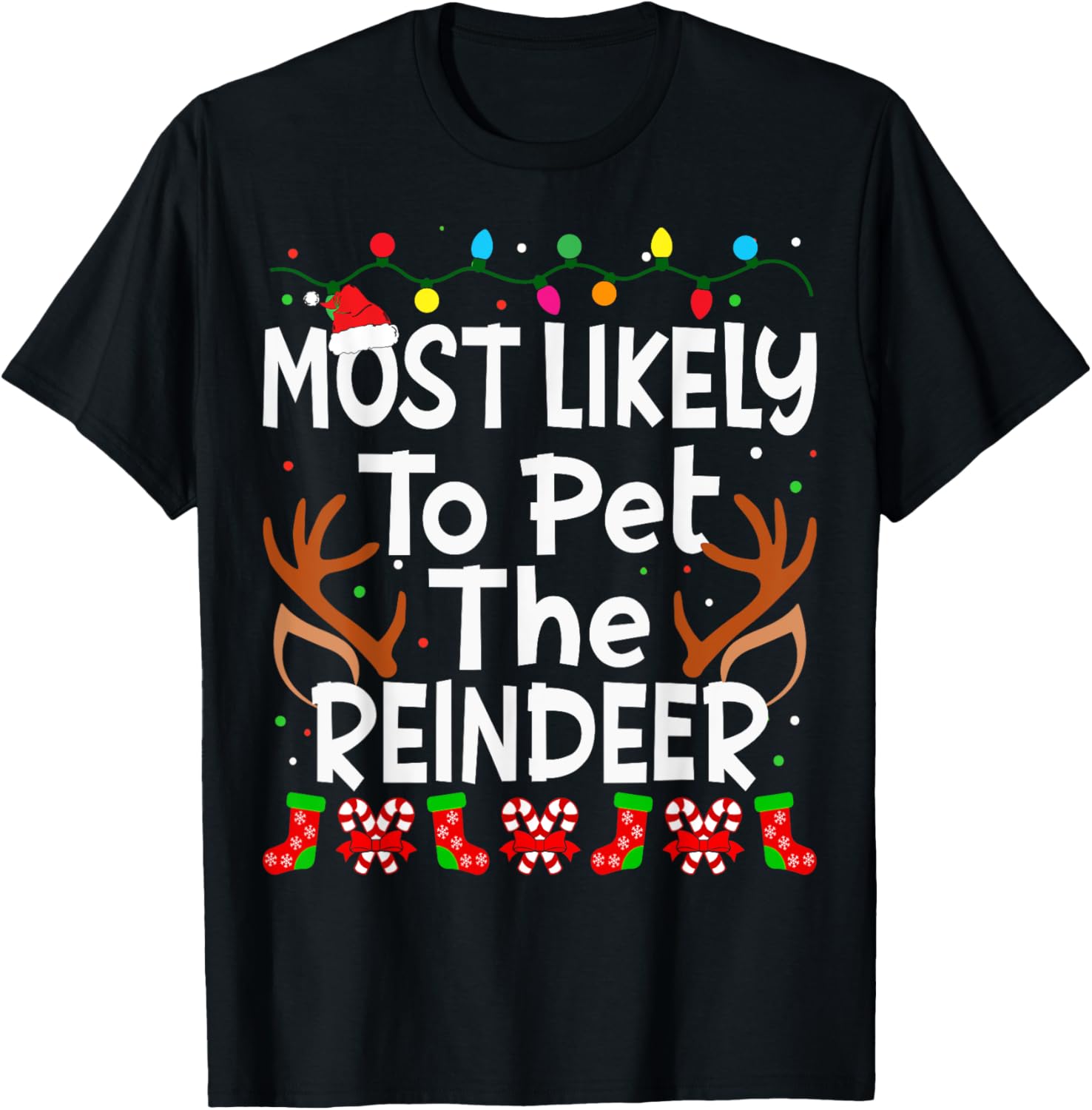 Most Likely To Pet The Reindeer Christmas Family Funny Joy T-Shirt