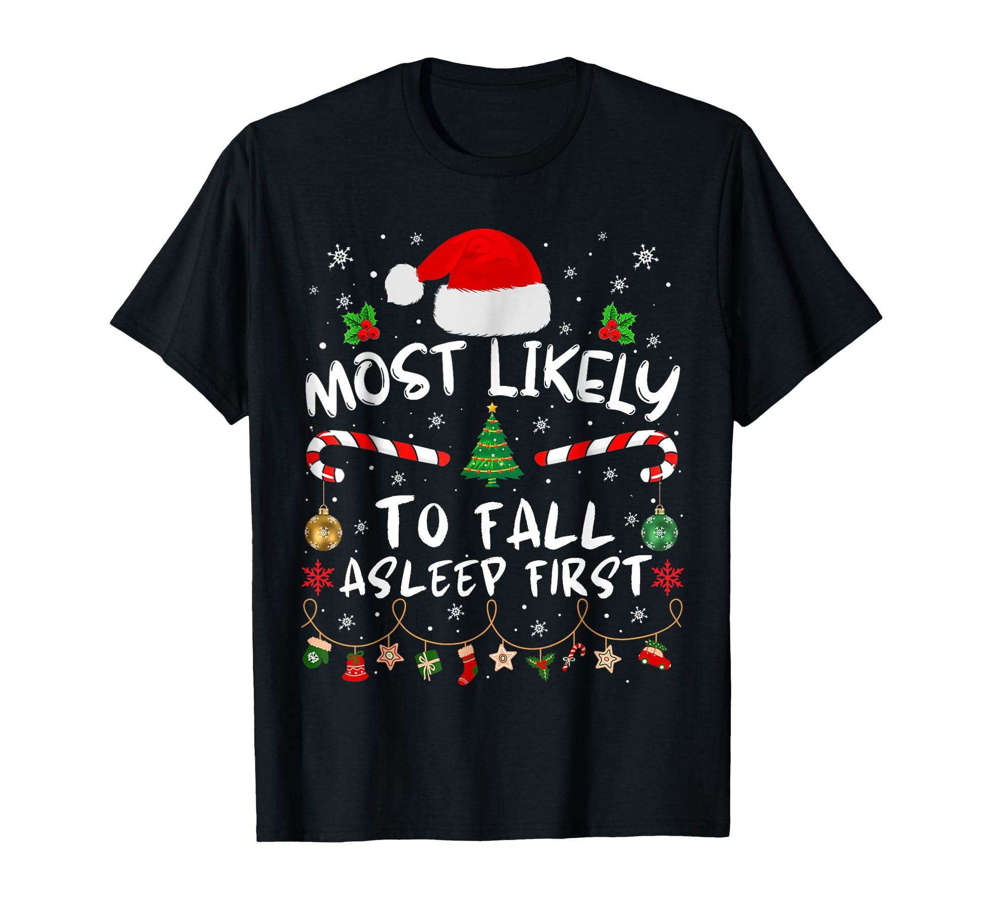 Most Likely To Fall Asleep First Funny Xmas Family T-Shirt