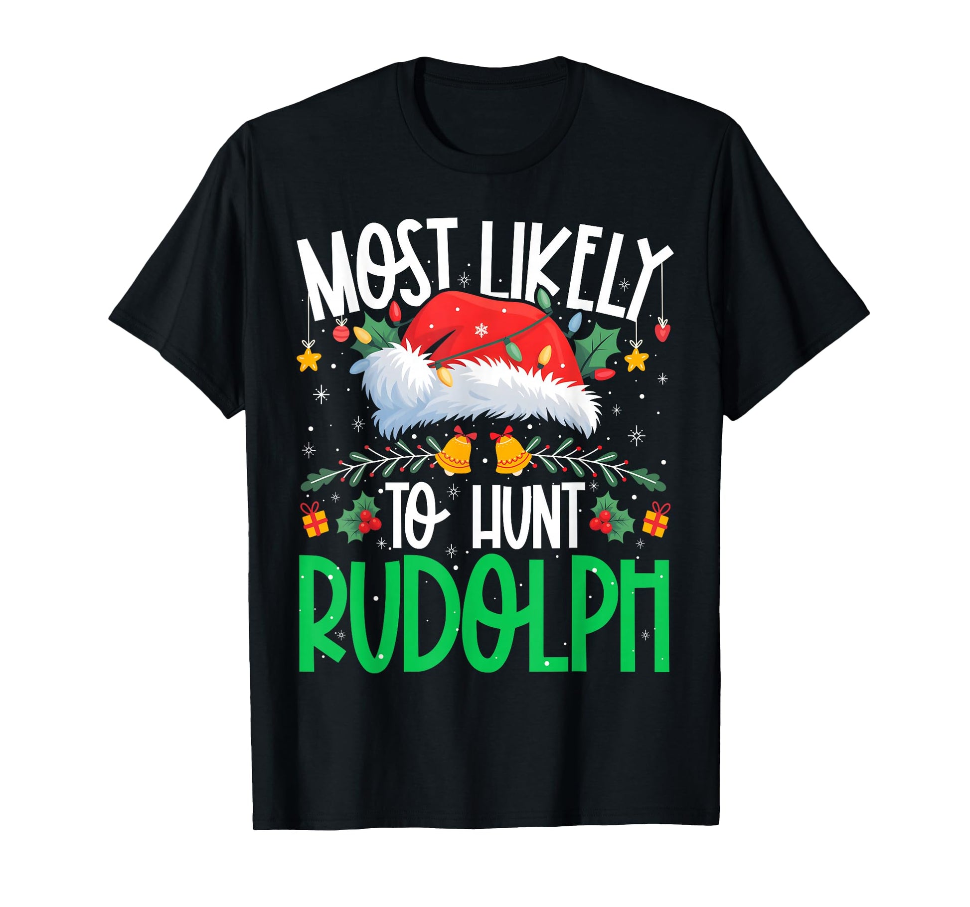 Most Likely to Hunt Rudolph Funny Matching Xmas T-Shirt
