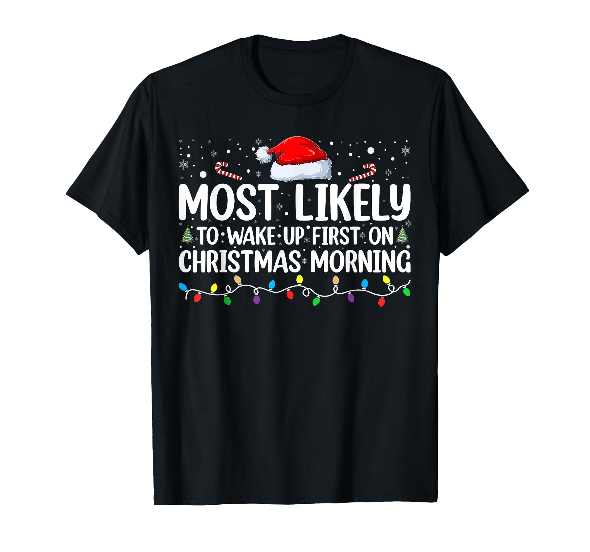 Most Likely To Wake Up First On Christmas Morning Xmas Light T-Shirt