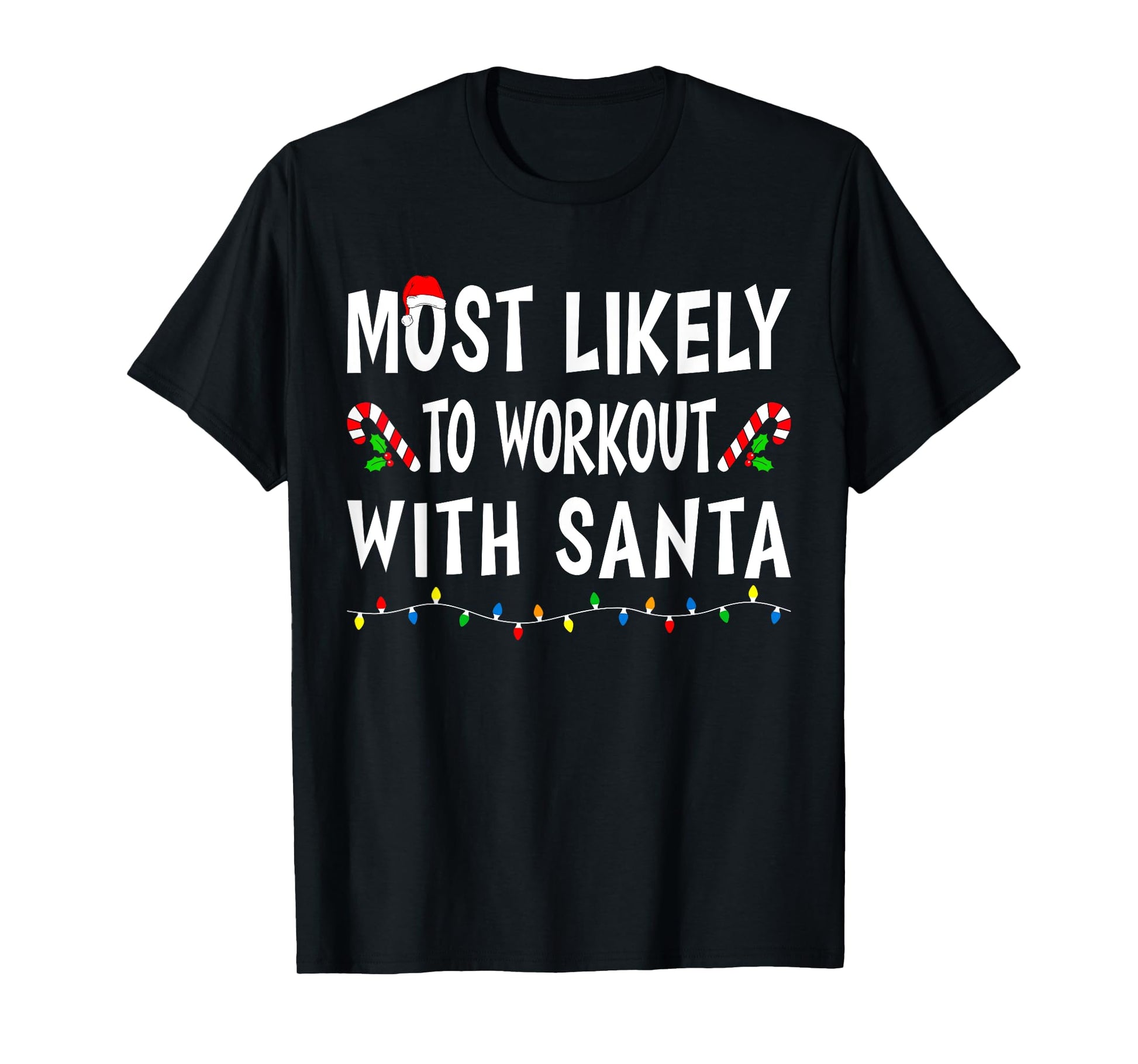 Most Likely To WorkOut With Santa Funny Family Christmas T-Shirt