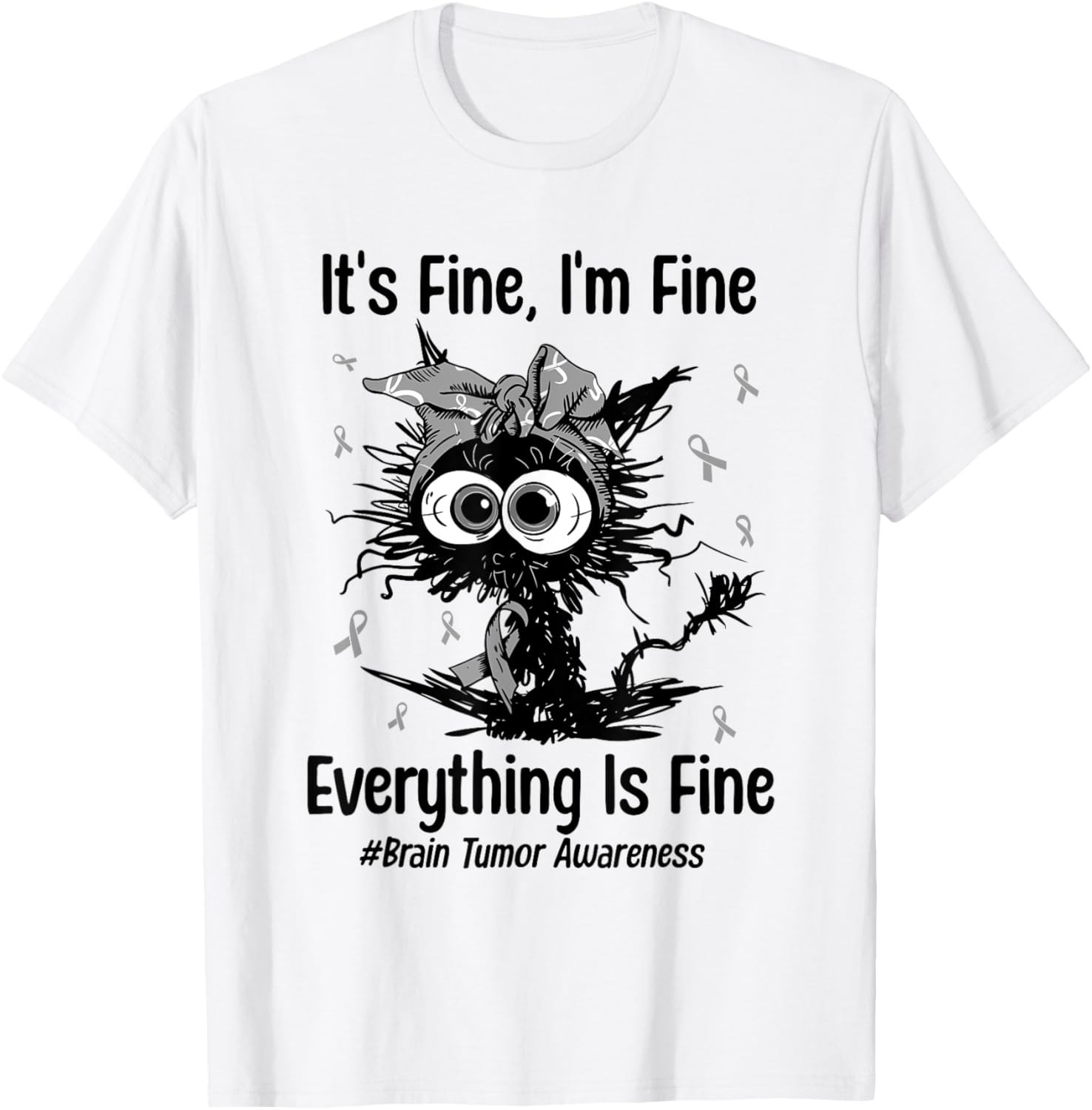 Motivational Brain Tumor Awareness Cat Gray Ribbon Funny T-Shirt