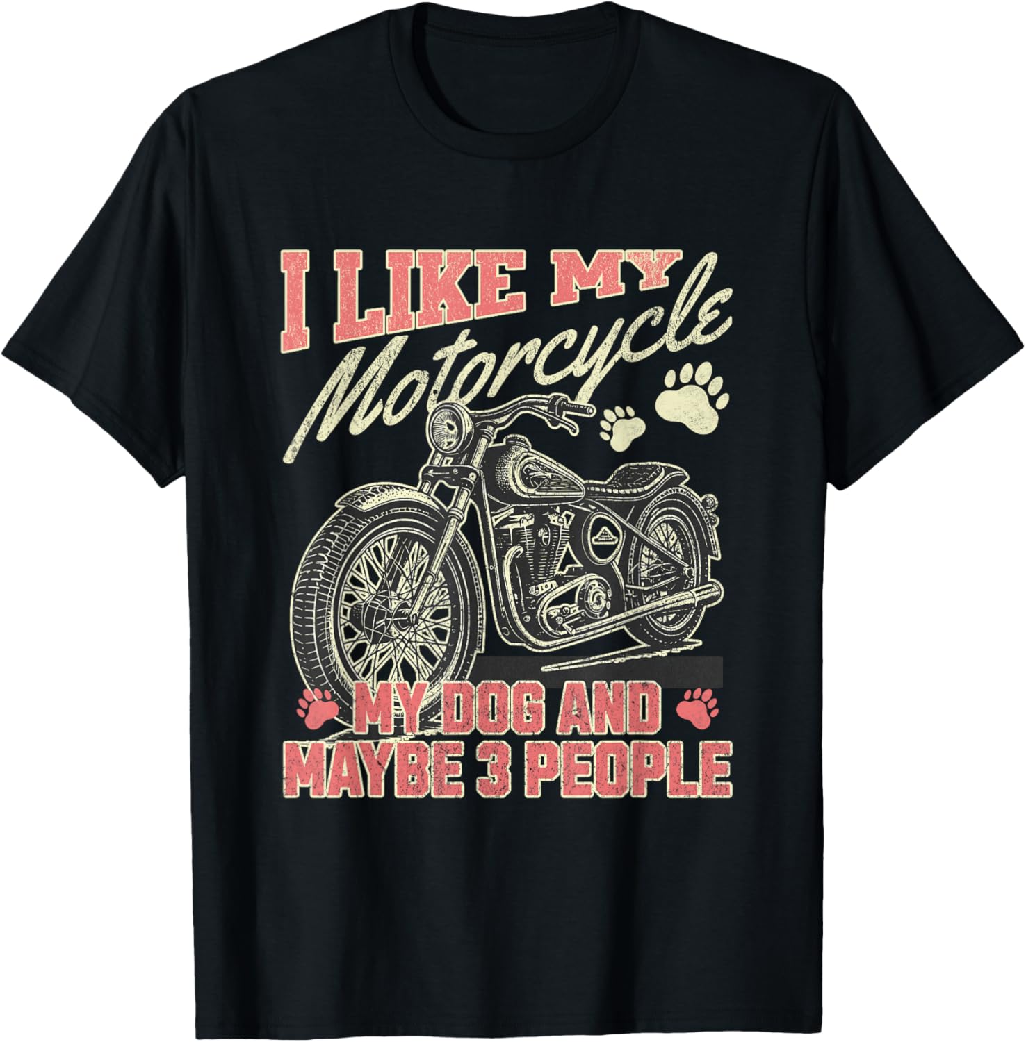 I Like My Motorcycle My Dog Maybe 3 People Funny Biker Men T-Shirt