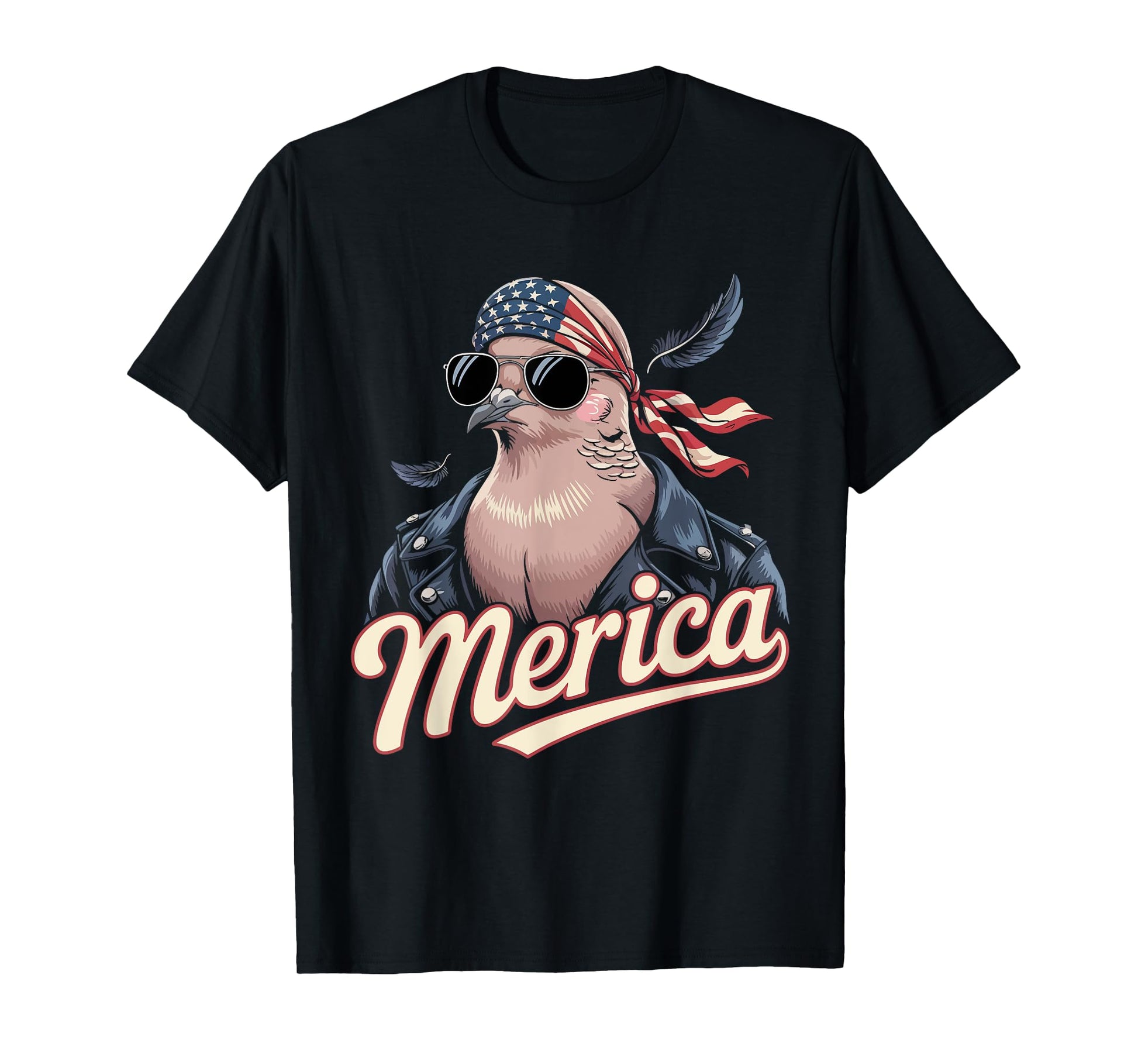Mourning Dove Bird Lover Sunglasses USA Flag 4th of July T-Shirt