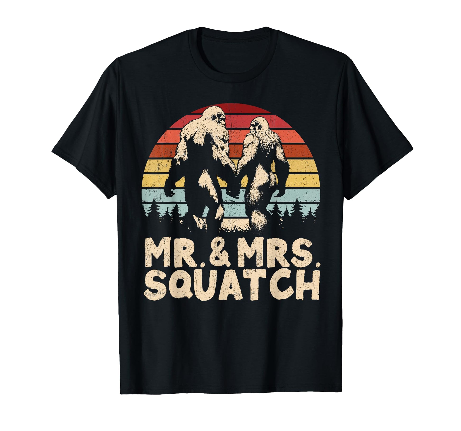 Mr Mrs Squatch Husband Wife Matching Bigfoot Funny Wedding T-Shirt