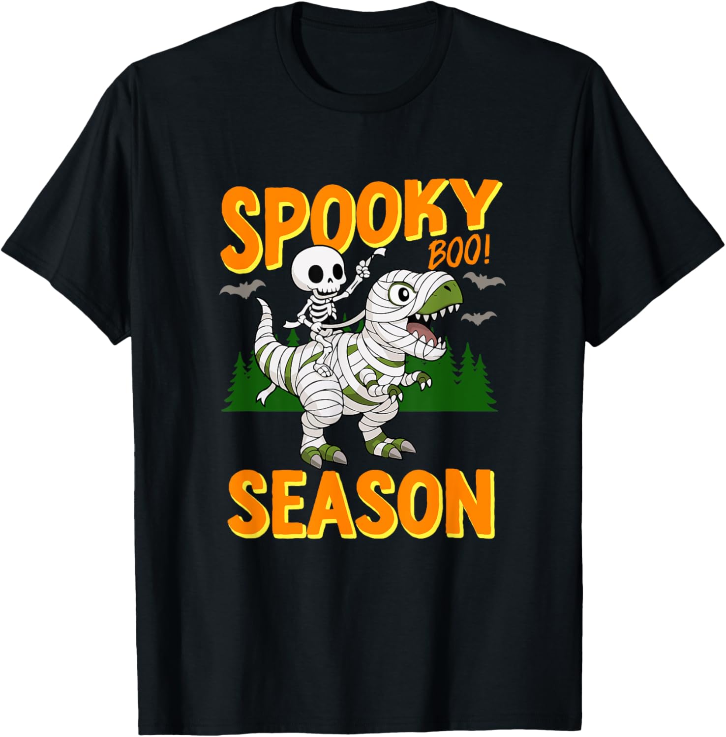 Mummy Dinosaur Skeleton Spooky Halloween Humor T-Shirt
