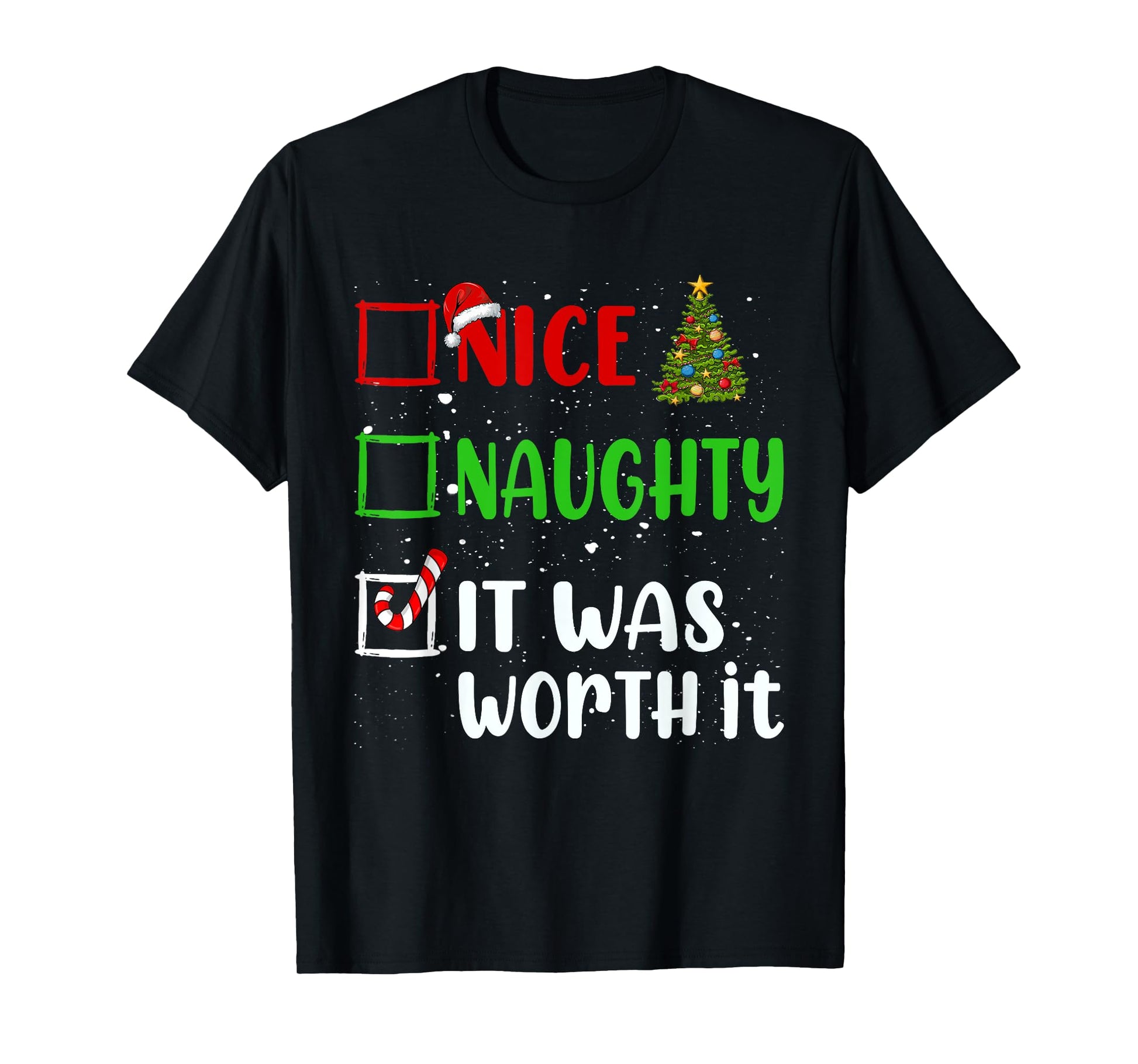 Nice Naughty It Was Worth It Christmas List Holiday Xmas T-Shirt