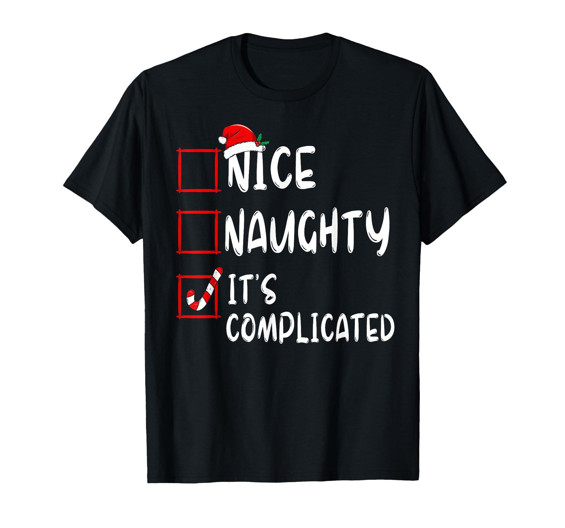 Nice Naughty It's Complicated Christmas List Santa Claus T-Shirt
