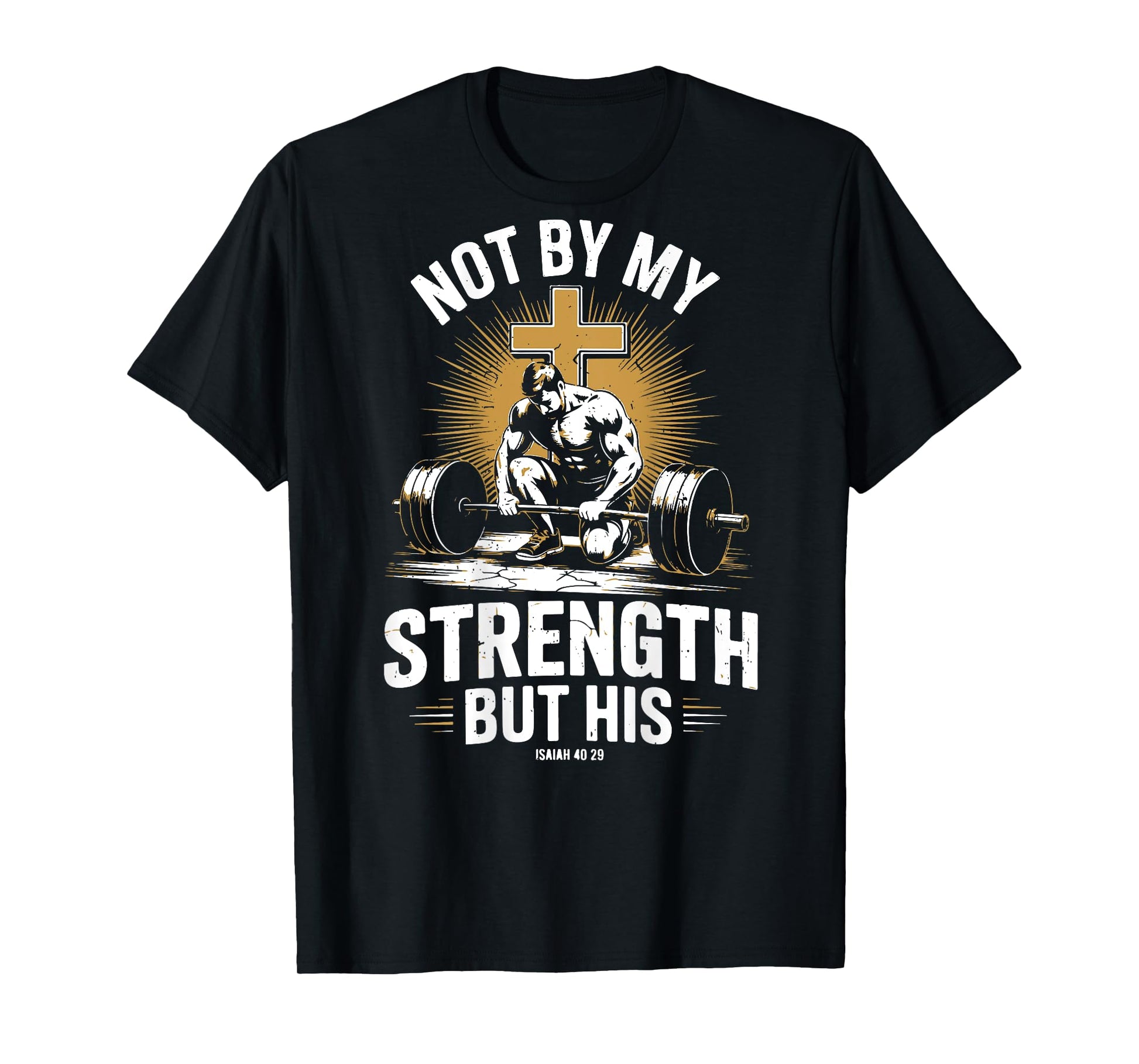 Not By My Strength But His Christian Men Gym Workout Barbell T-Shirt