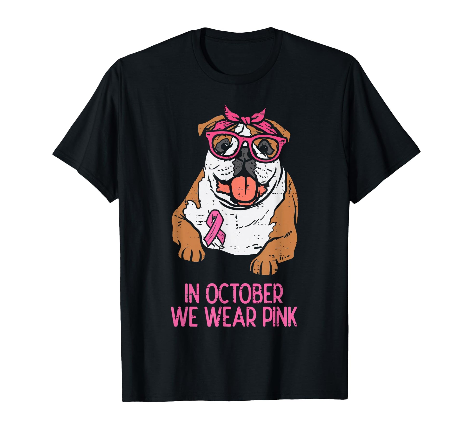 October We Wear Pink English Bulldog Breast Cancer Awareness T-Shirt