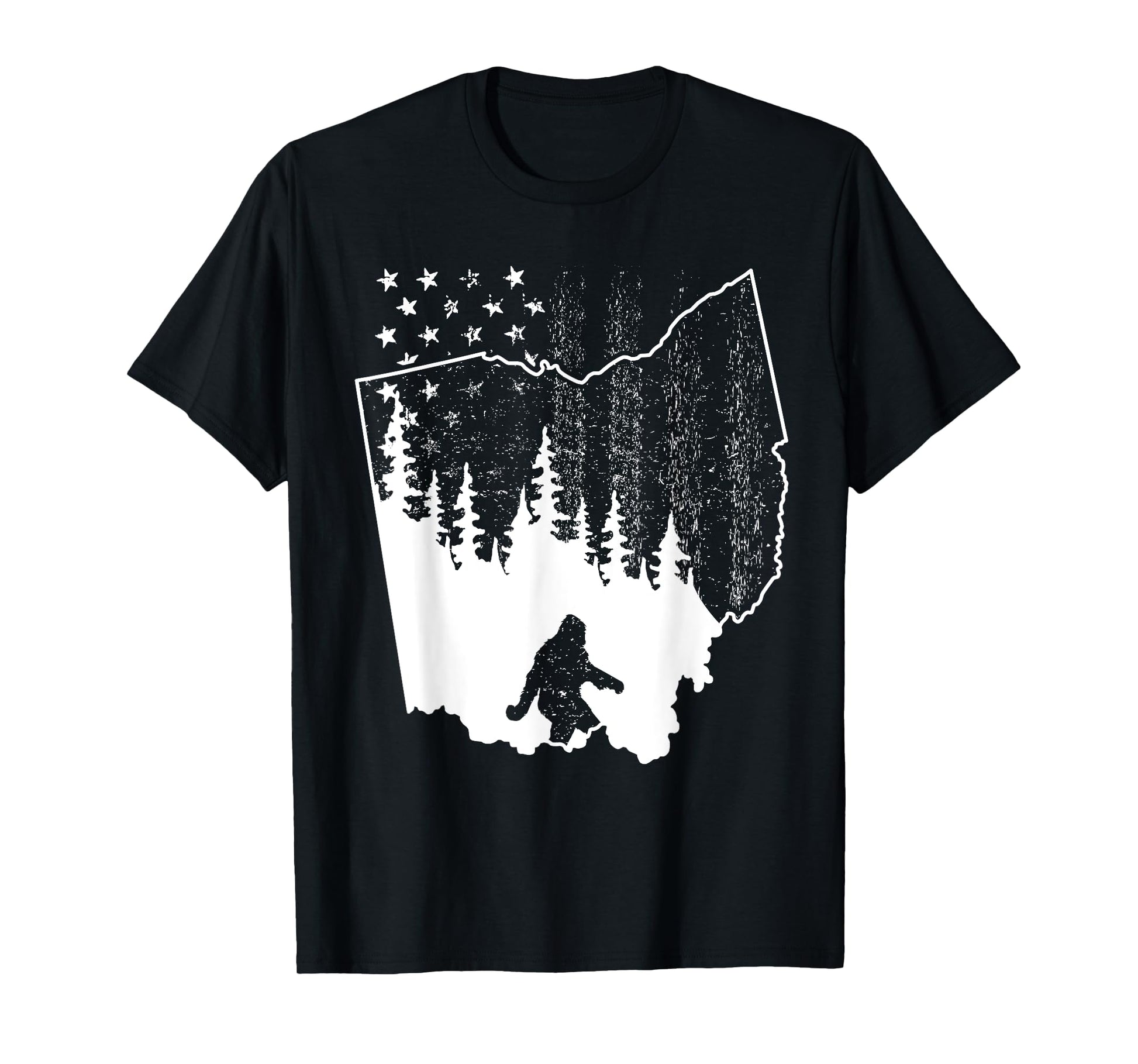 Ohio Bigfoot American Flag Sasquatch Usa Silhouette Ohio Map T-Shirt