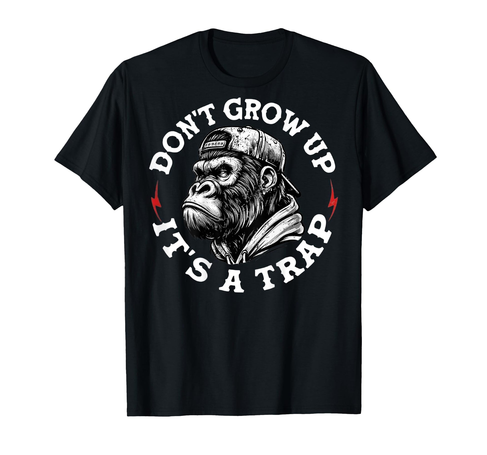 (On Back) Don't Grow Up It's A Trap Funny Monkey T-Shirt