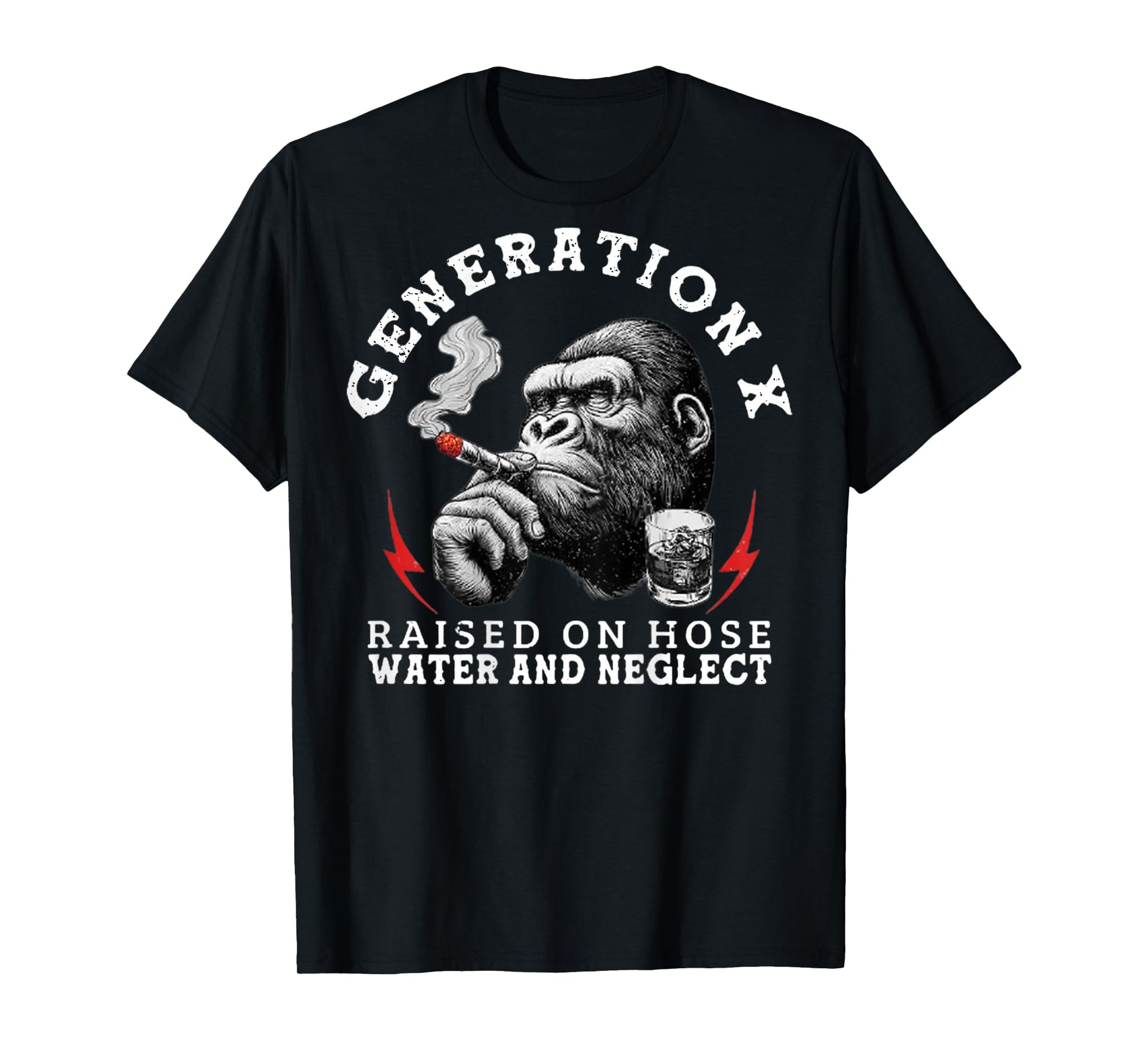 (On Back) Gen X Raised On Hose Water and Neglect Funny Monkey T-Shirt