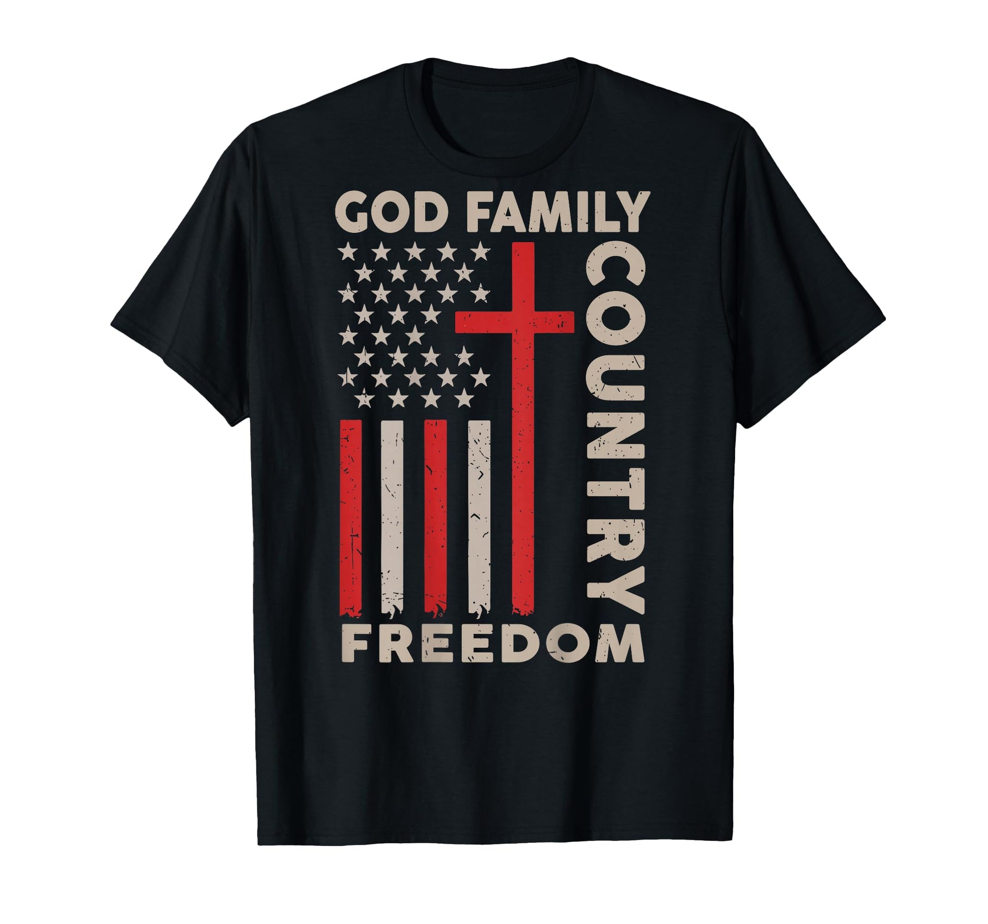 On-Back God Family Country Freedom Patriotic Christian Faith T-Shirt