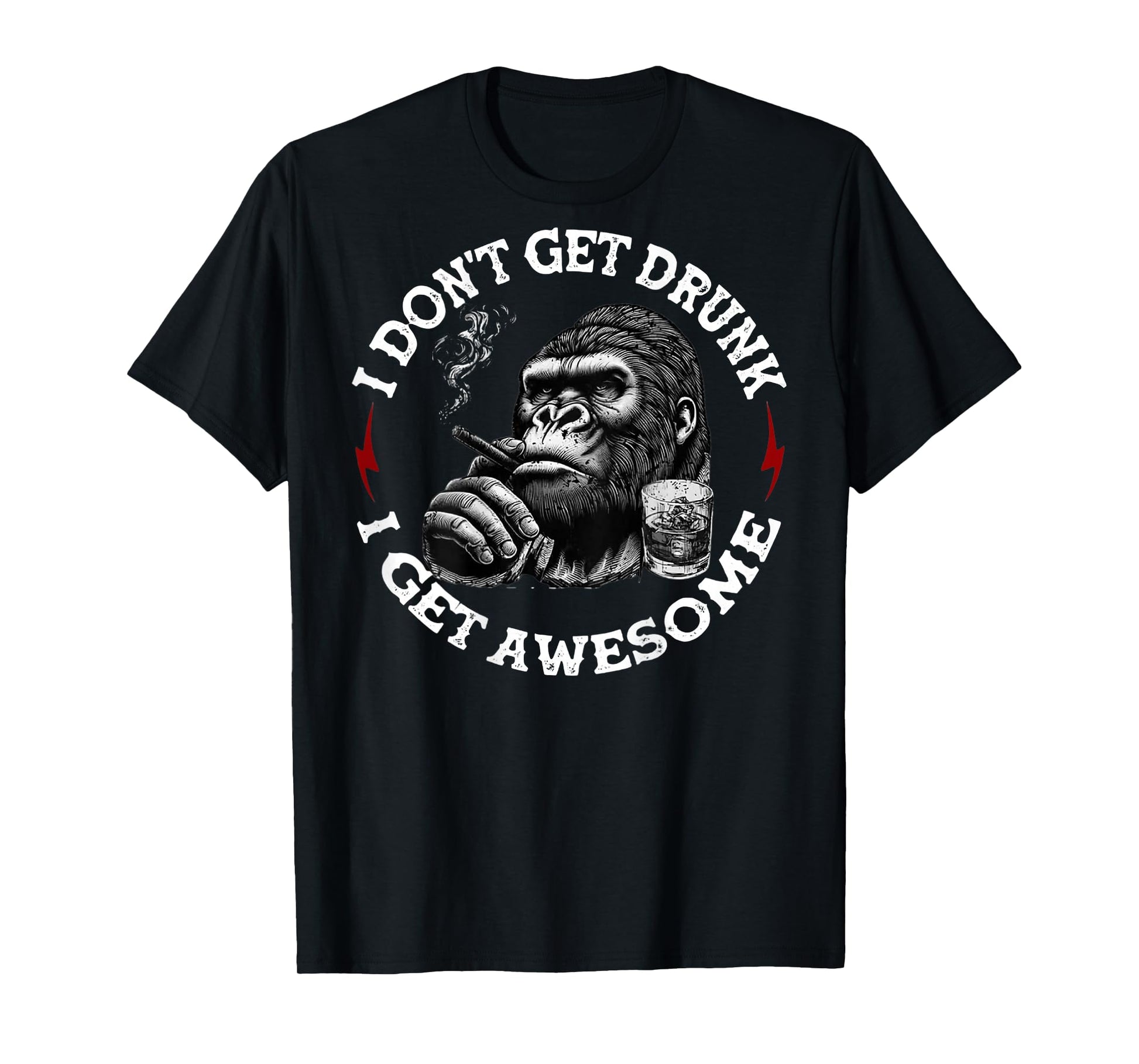 (On Back) I Don't Get Drunk I Get Awesome Funny Monkey T-Shirt