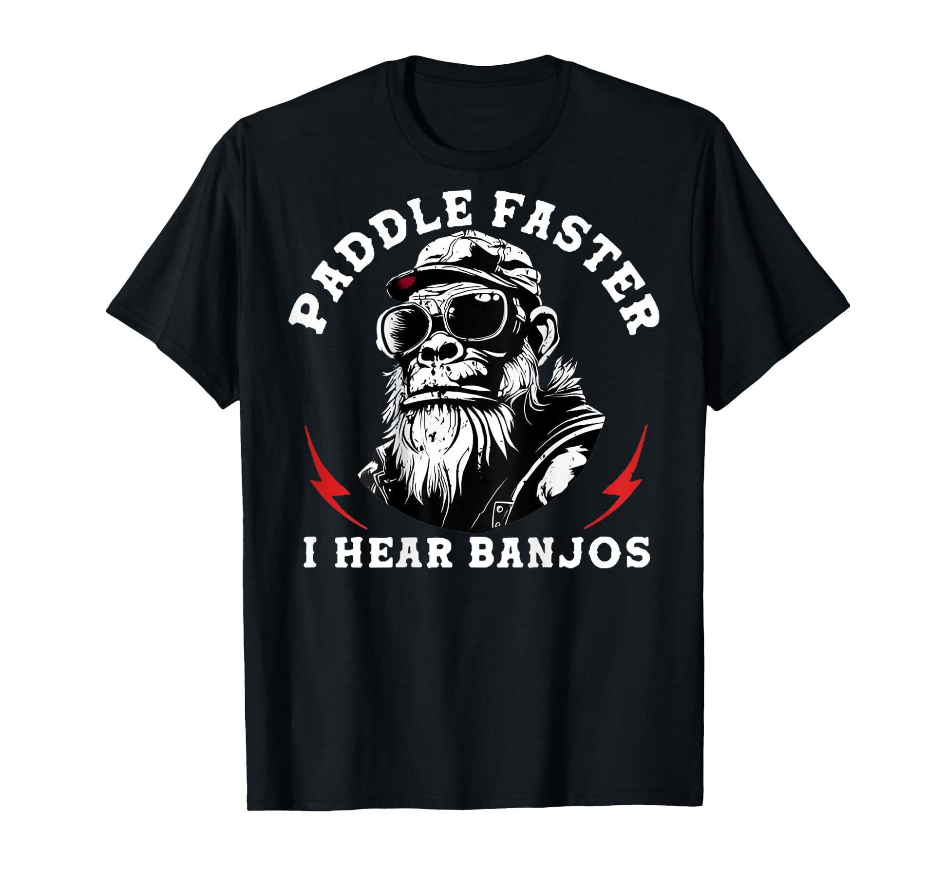 (On Back) Paddle Faster I Hear Banjos Funny Monkey T-Shirt