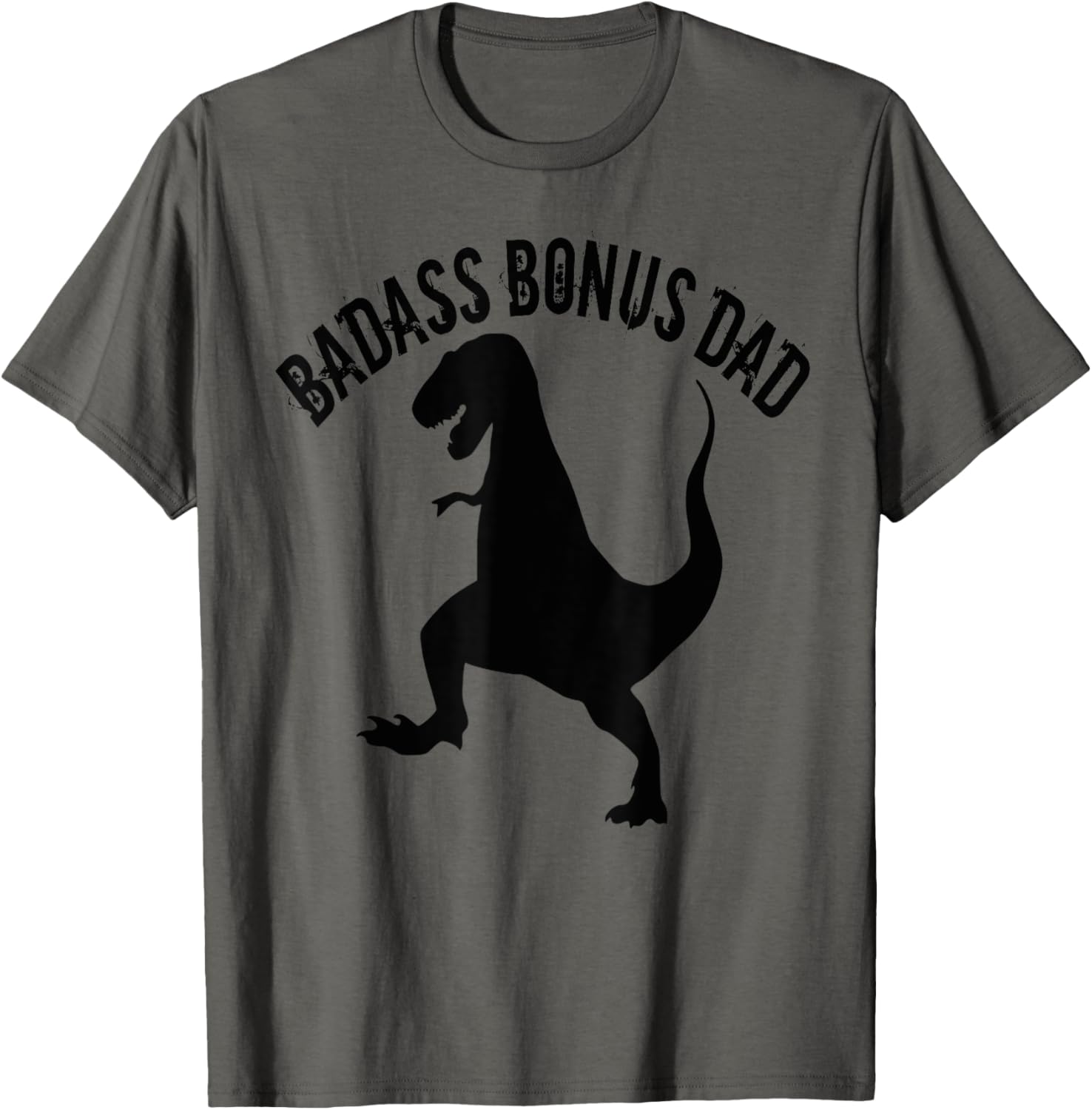 One Badass Bonus Step Dad Dinosaur Birthday Gift T-Shirt T-Shirt