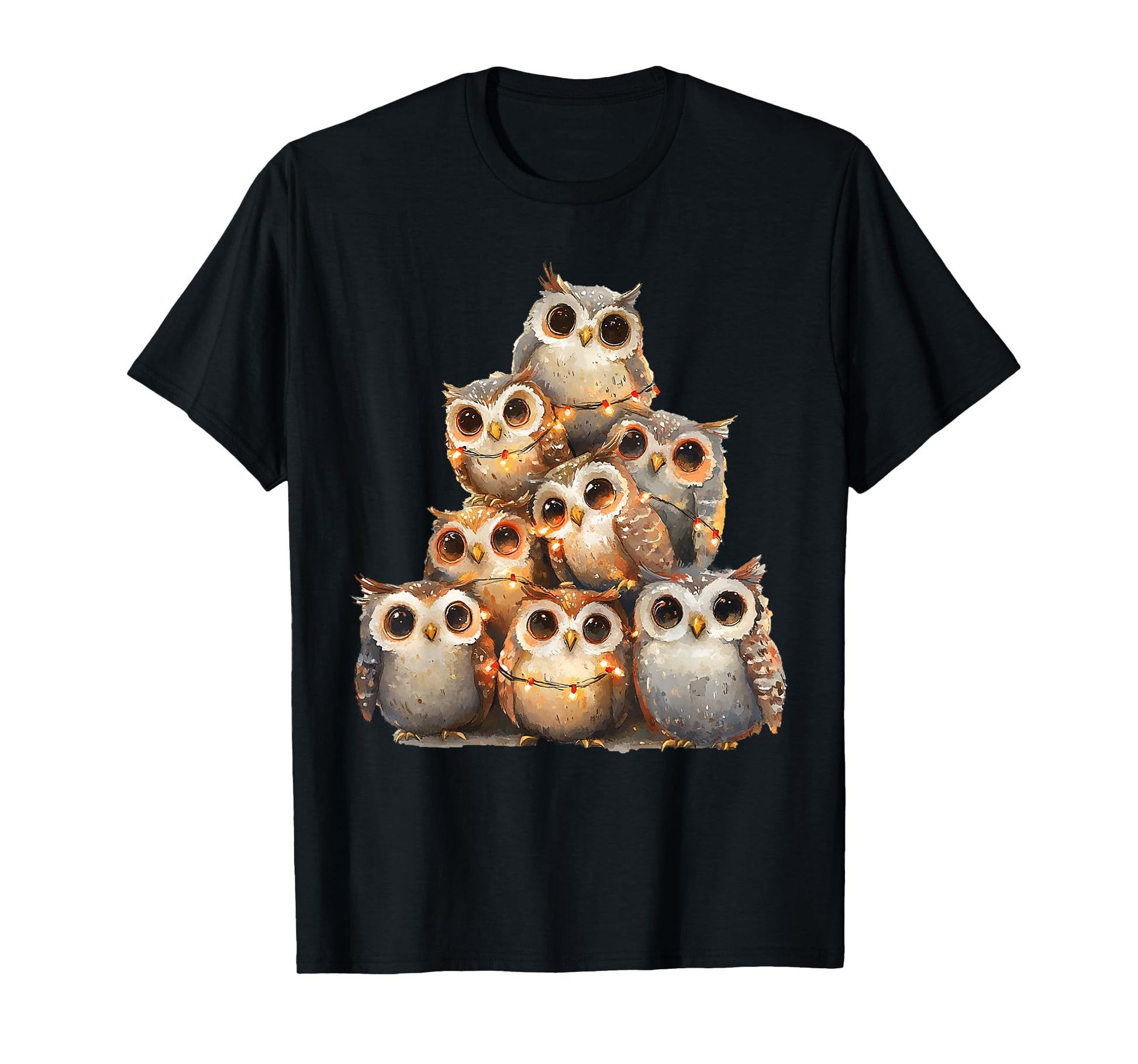 Owl Lights Christmas Xmas Gifts Unisex Adults Kids Owl Lover Xmas T-Shirt Black Small Short Sleeve Round Neck T-Shirt
