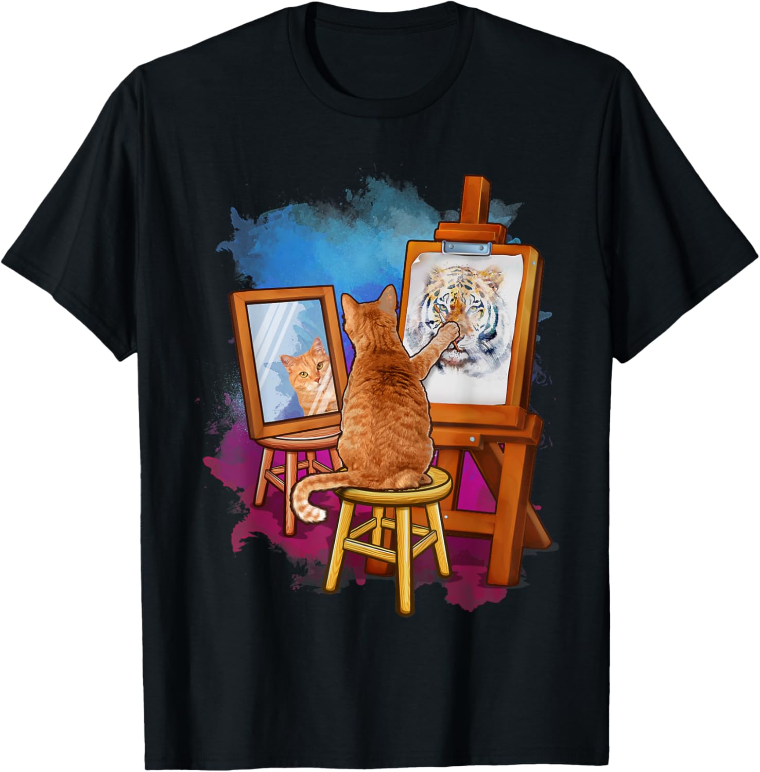 Cat Painting Lion Artistic Animals Lover Graphic Novelty T-Shirt