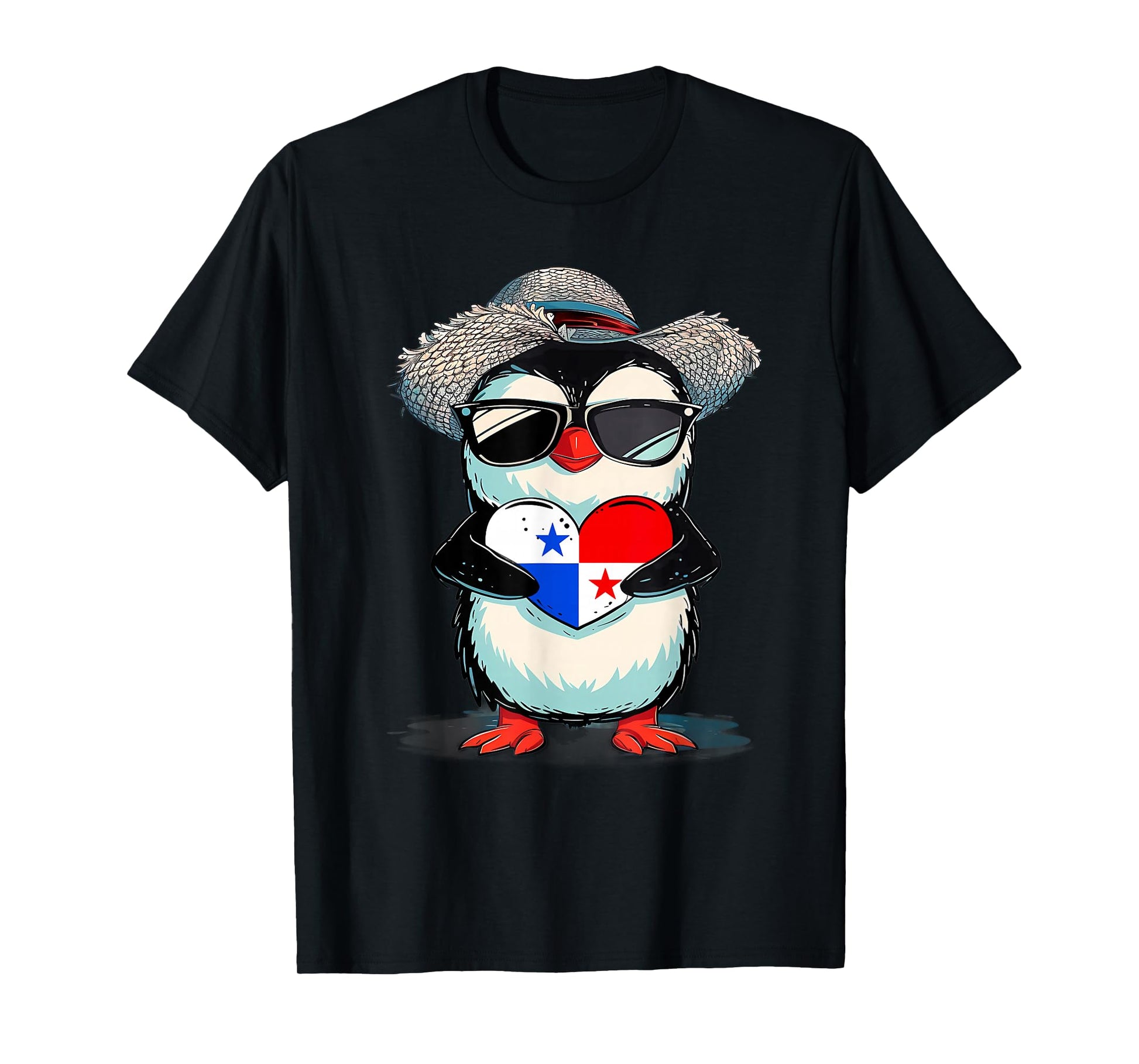 Panama Cute Penguin Heart Panamanian Roots Panamanian Flag T-Shirt